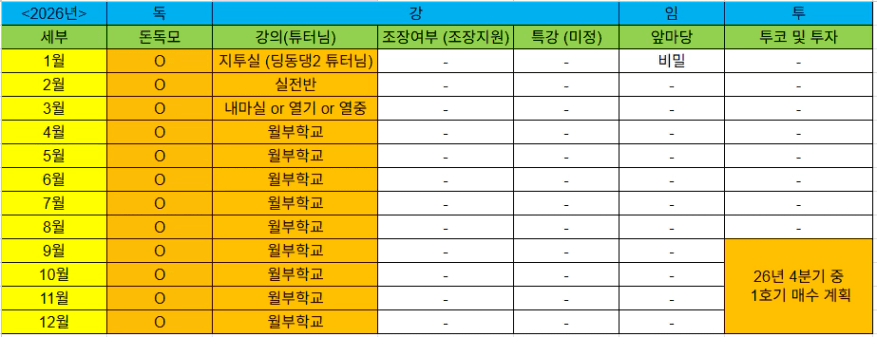 2026년 계획을 독강임투 기준으로 작성하였습니다.