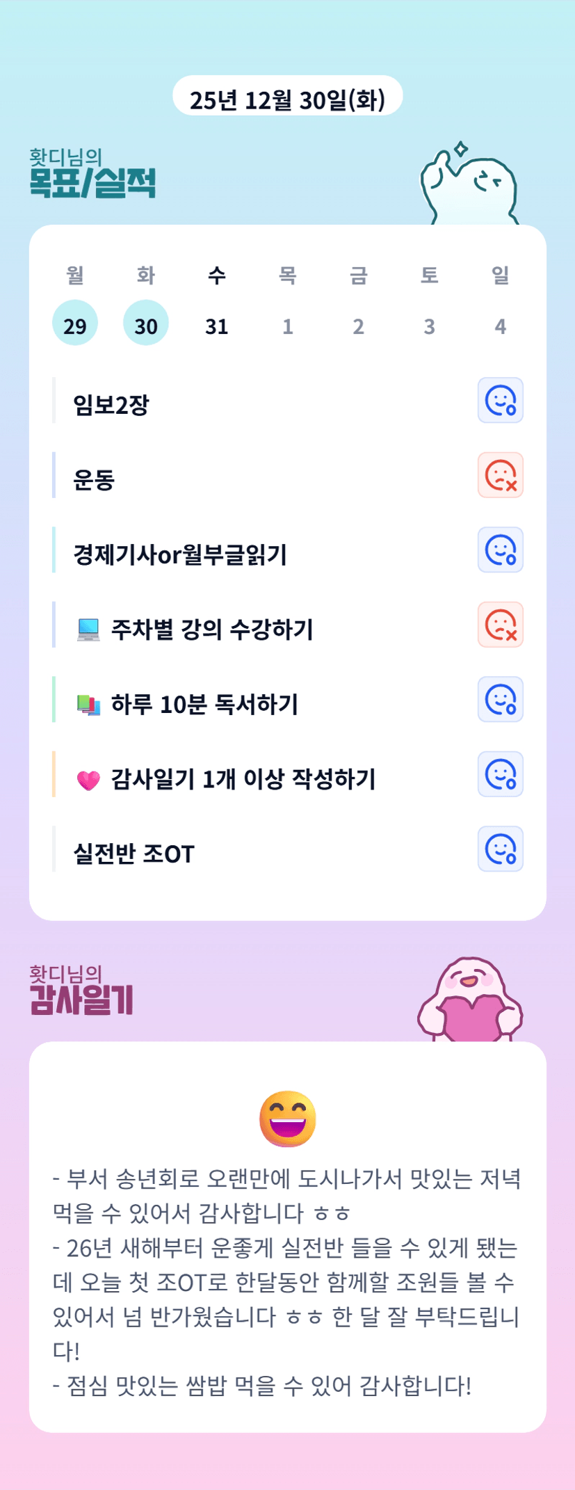 홧디님 만나서 반가웠습니다! 1월 잘 부탁드려요:) 임장도 잘 부탁드려요!!!!!!1