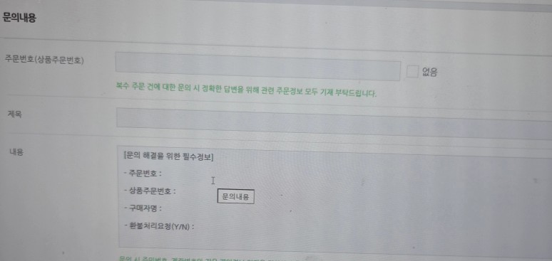 아래 문의내용 칸에 “필수정보”을 쓰게 되어 있더라구요…
