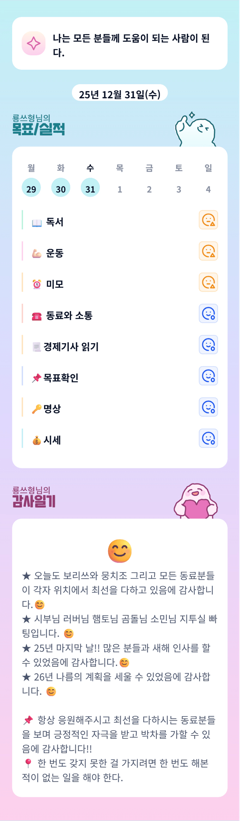 룡쓰님 응원해주셔서 감사합니다💛 새해 학교에서 잘해내실거라 믿습니다^^ 응원해드립니다 화이팅!!!
