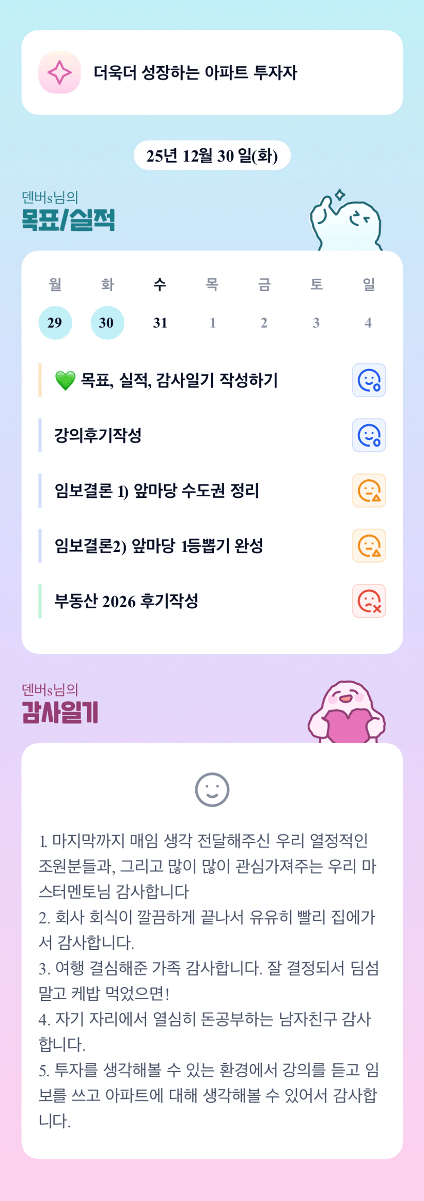 덴버님 한 달 동안 도움 많이 받았습니당♡ 감사해요!!! 해피뉴이어~~