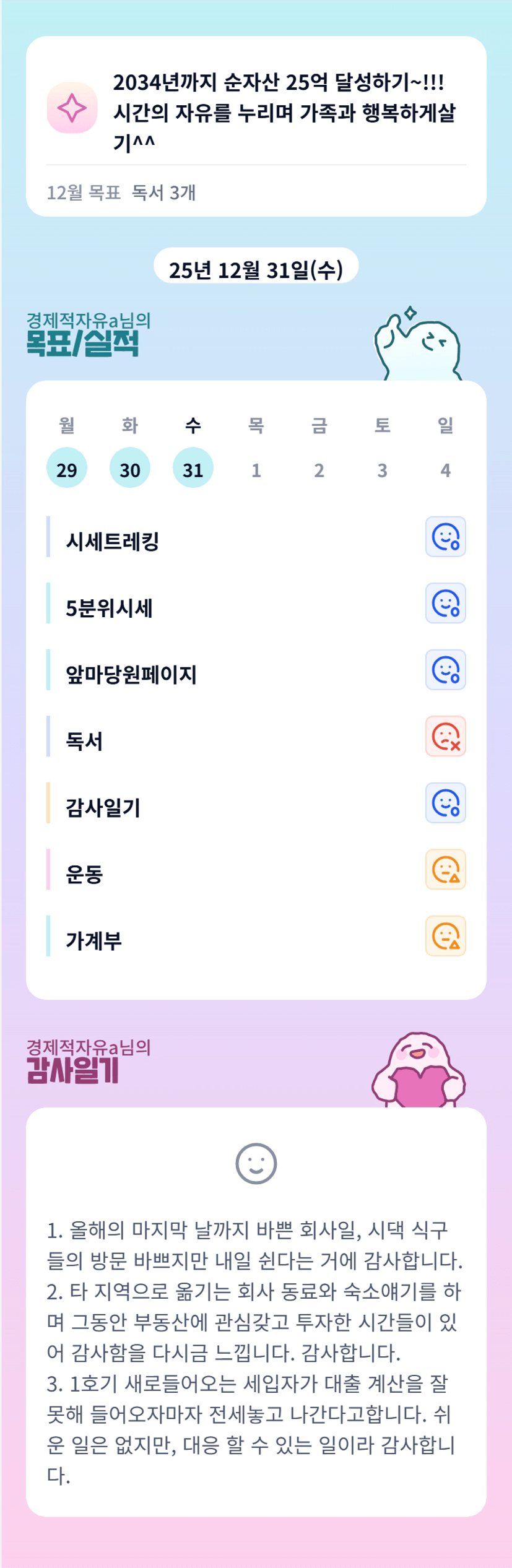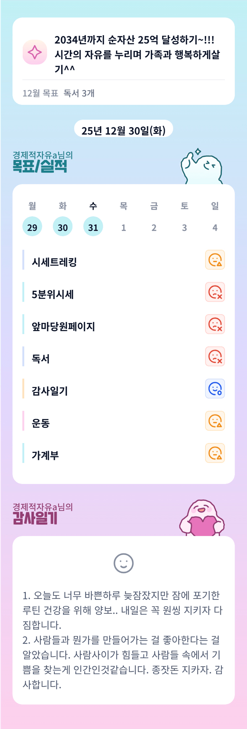 늘 많은 일들이 있지만 참 하나하나 잘 해결해 나가는 자유님의 의연함 멋져요 바쁜 연말 보내셨군요~ 작년한해 힘드셨던거 곱절로 올해엔 좋은일 행복한 일들만 있으실거에요 자유님의 2026년도 응원할께요🙏
