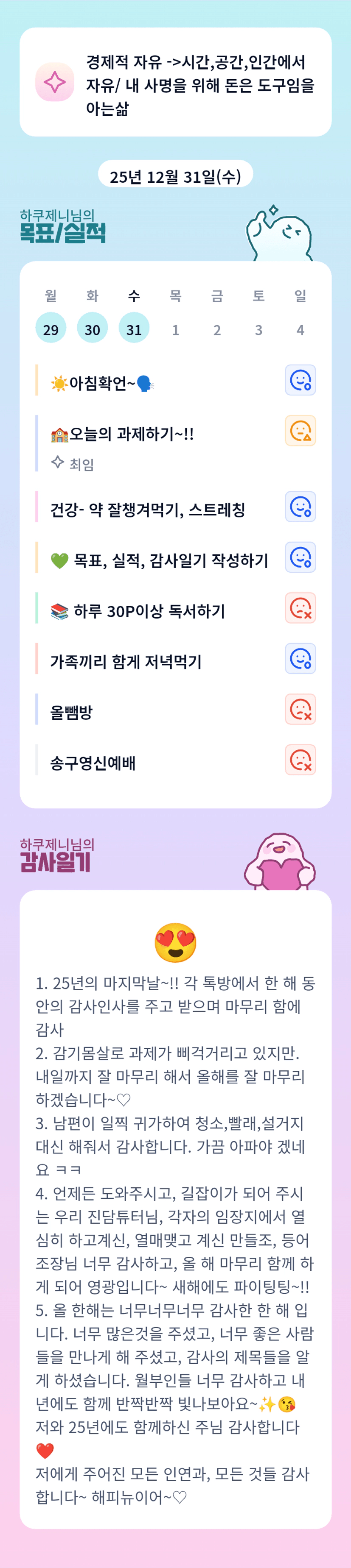 제니님 올해도 수고 하셨어요^^ 내년도 멋진 한해 화이팅 !! 새해 복 많이 받으세요.
