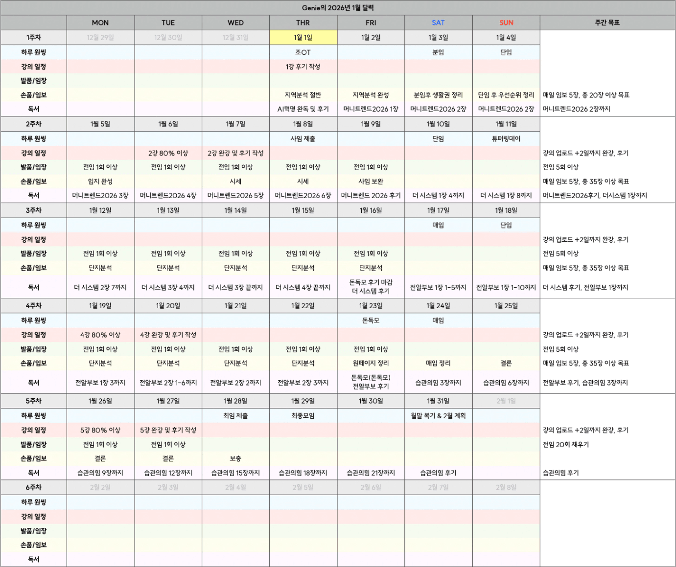 지니님~1월 한달도 멋지게 잘해 내실거예요. 화이팅~~♡♡