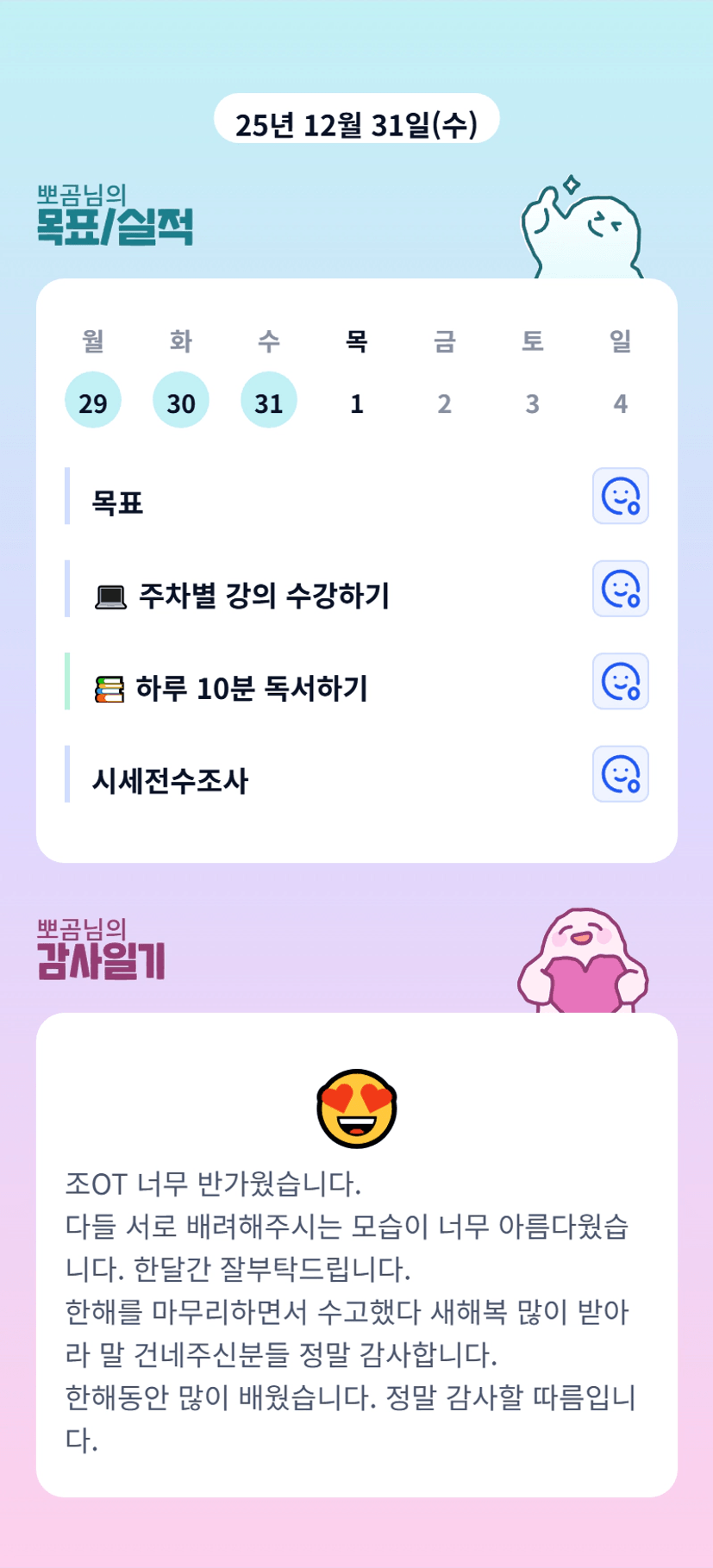 뽀곰님 어제 얼굴 봬서 반가웠어요 함께 갓생 달려봐요😍