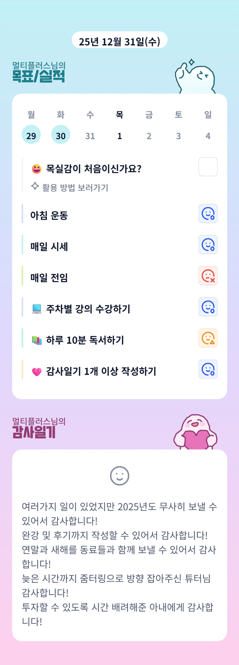 멀티님~ 2026년도 한걸음씩 뚜벅뚜벅 화이팅입니다! 가주아!!!❤️🔥🫡