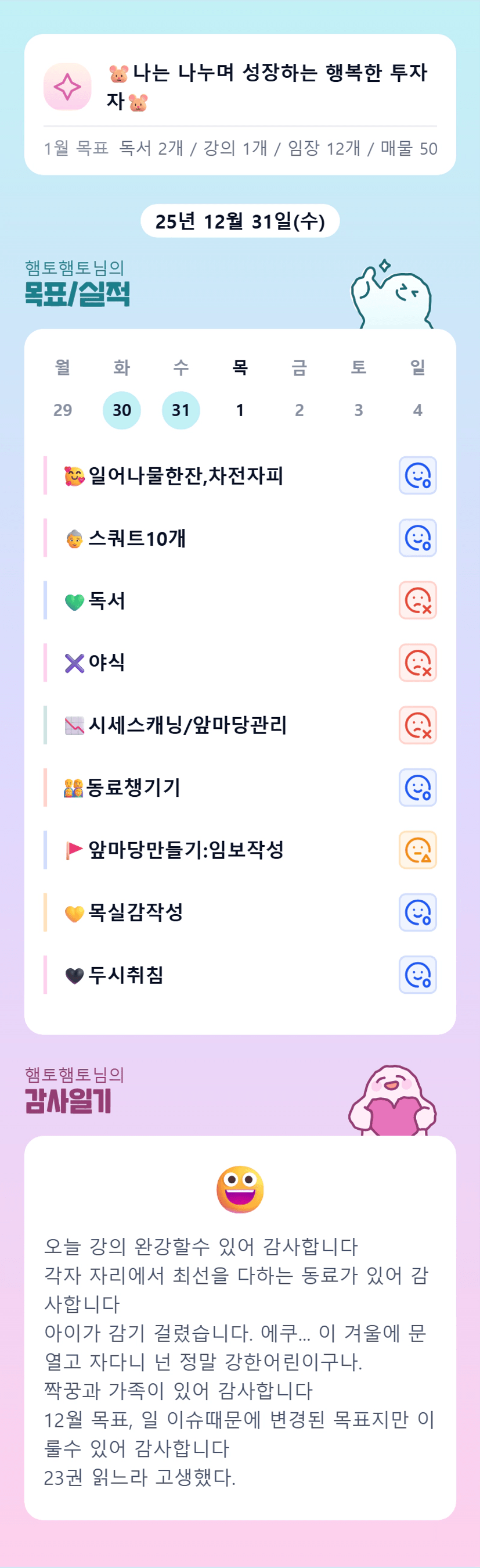 ๐Ÿฉต๋ฏผ๊ฐฑํŠœํ„ฐ๋‹˜, ๋‚ ๊ฐœํ•€๋ ˆ๋“œ๋ถˆ๋‹˜, ์ƒ์Šน๋‹˜, ํฐ๊ฟˆ๋ฐ”๋ผ๊ธฐ๋‹˜, ์™„๋Œ€์žฅ๋‹˜, ํ™ง๋””๋‹˜, ํŠผํŠผํ•˜๋งˆ๋‹˜, ๋งŒํ† ๋ฐ”๋‹˜, ์‚ฌ๋ž‘์Šค๋Ÿฌ์šด๋งˆ์Œ๋‹˜ ์˜ค๋Š˜๋„ ๋ชฉํ‘œ๋ฅผ ํ–ฅํ•ด ํŒŒ์ดํŒ…์ž…๋‹ˆ๋‹ค