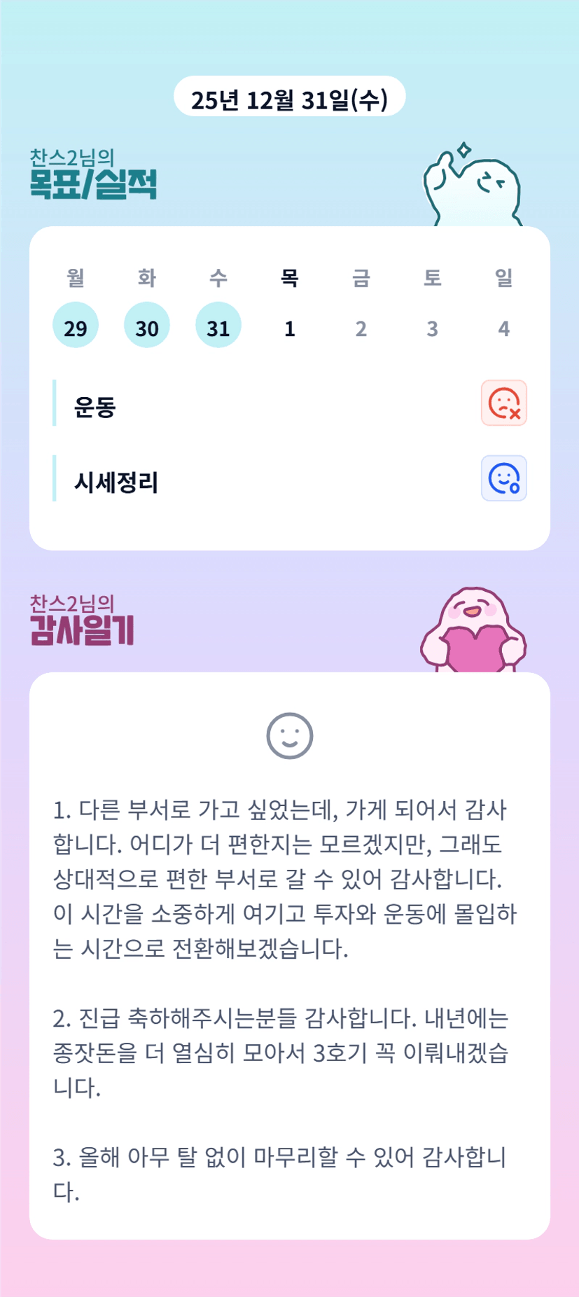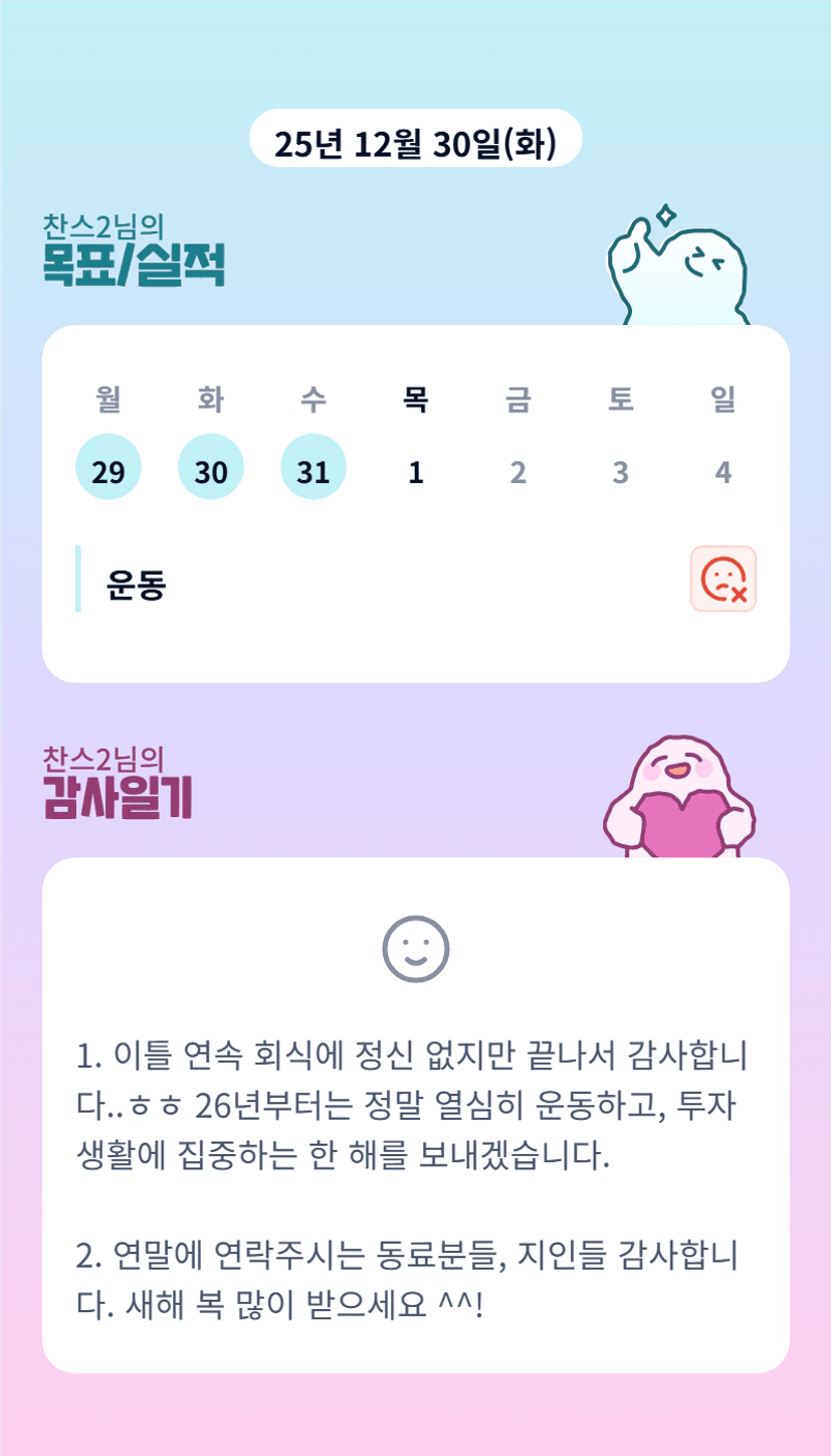찬스님 부서이동, 진급 모두 축하드려요~~ 26년도 같이 힘내 봅시다🙈✨️