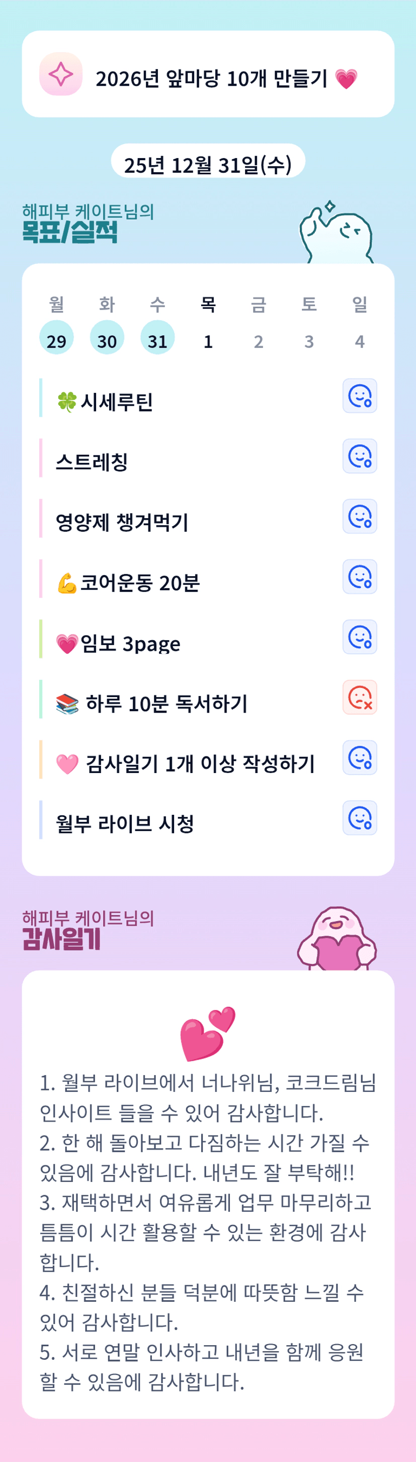 25년에도 고생 많으셨어요, 부조장님. 26년도에도 월부에서 화이팅 하시길 바랍니다~~!!!