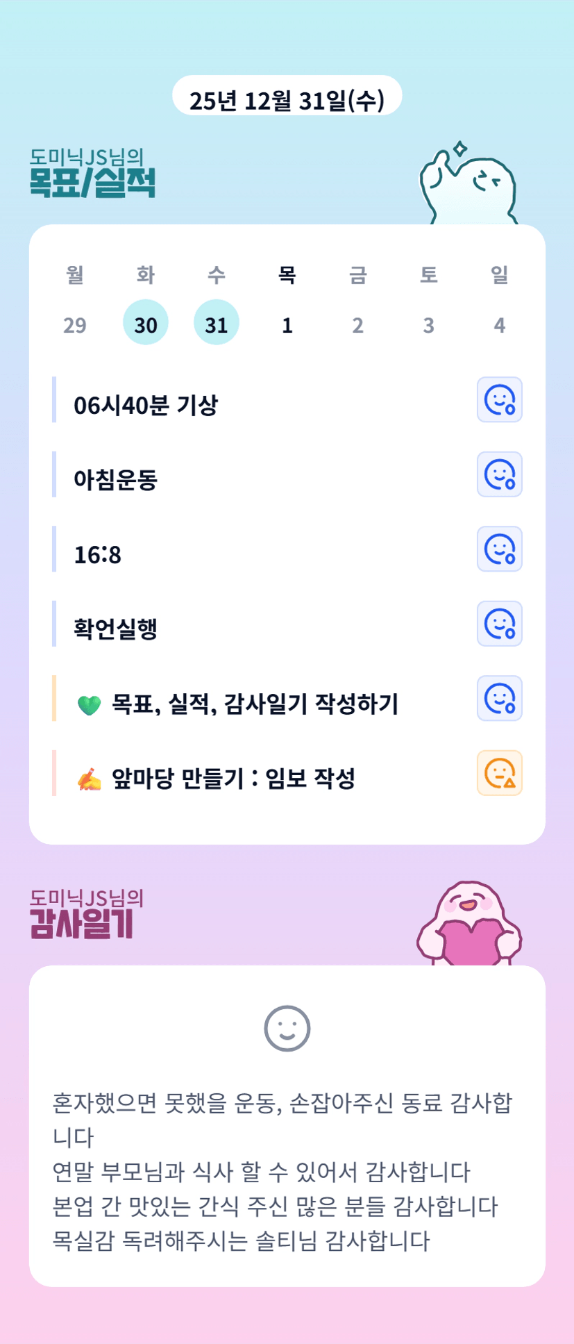 도미닉님 ! 힘내서 다시 루틴잡아보시죠 ~! 계속 응원 하겠습니다 ~ 파이팅 !!