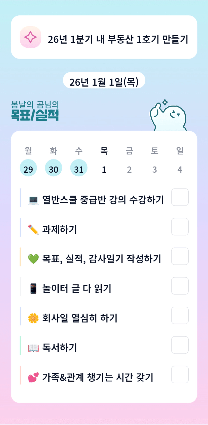 봄님~~새해 복 많이 받으세요💖 2026 알찬 한 해를 함께 보내 보아요!!!! 빠이팅!!