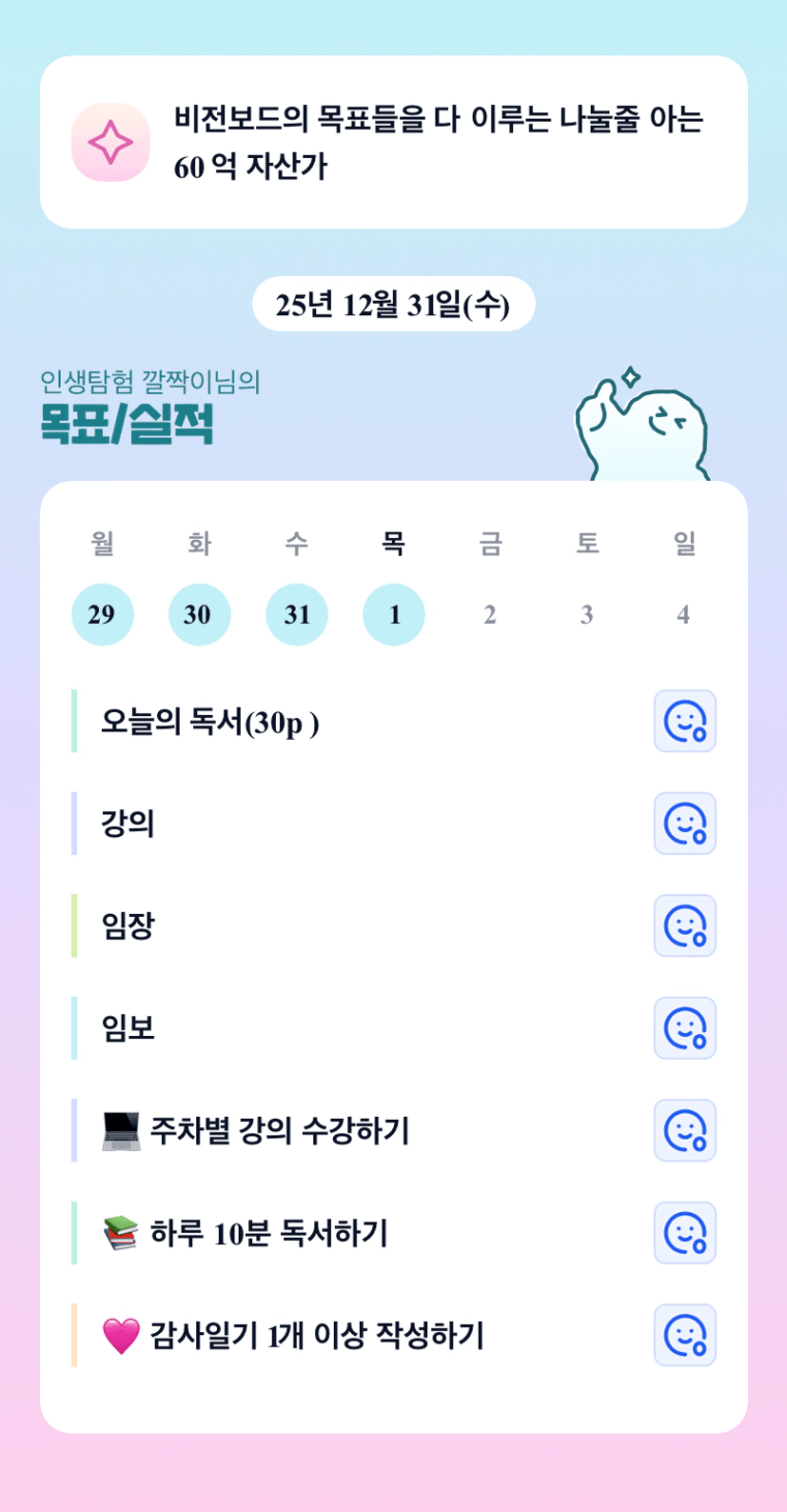 깔짝이님 벌써 분임을!! 새해 첫날을 멋지게 시작하셨네요!! 26년에도 성장하시는 깔짝이님이 기대됩니다!
