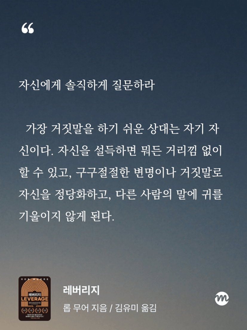 이 책을 통해 가장 크게 느낀 점은 레버리지는 기술이 아니라 태도라는 사실이다.