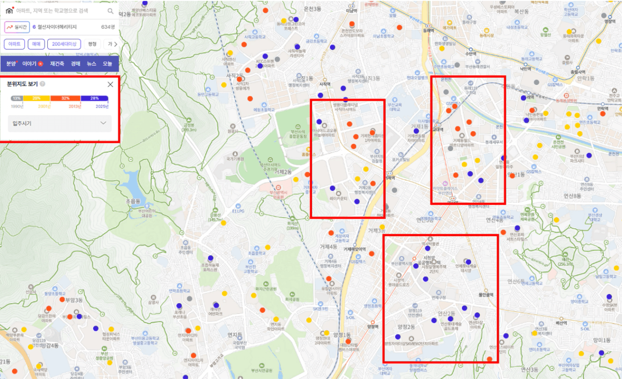 2. 아파트 밀집 지역 확인 (연식 포함)