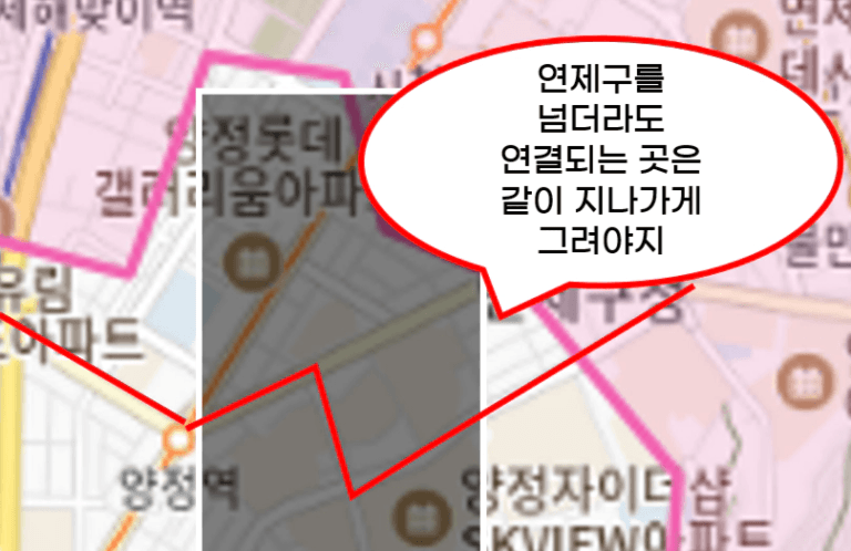 연계되는 구의 생활권까지 포함해 그려두는 것이 좋습니다.