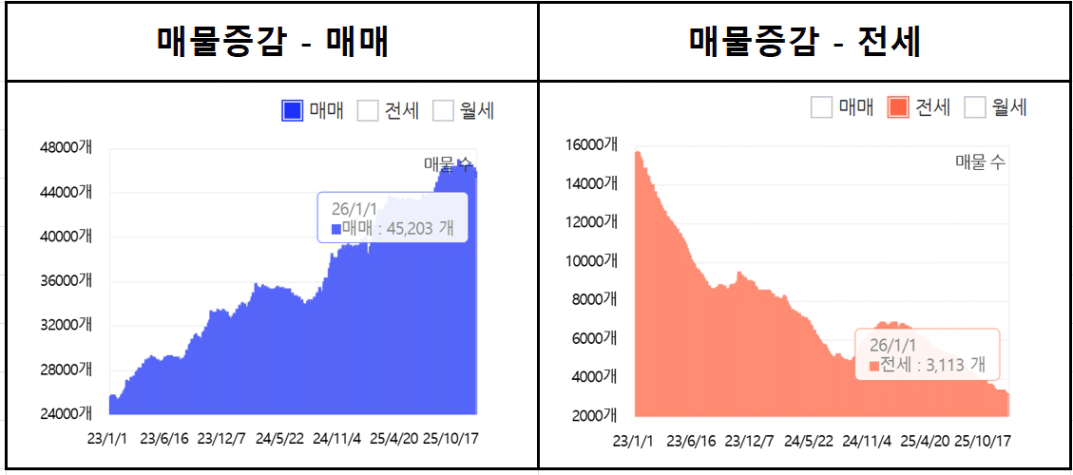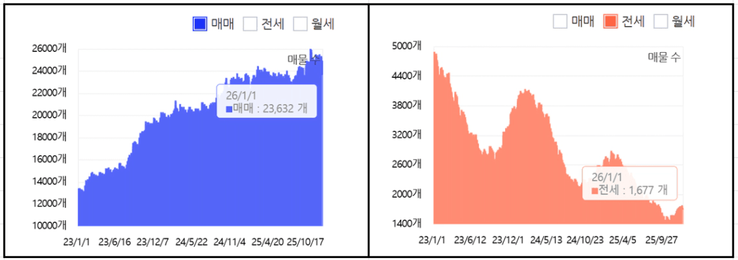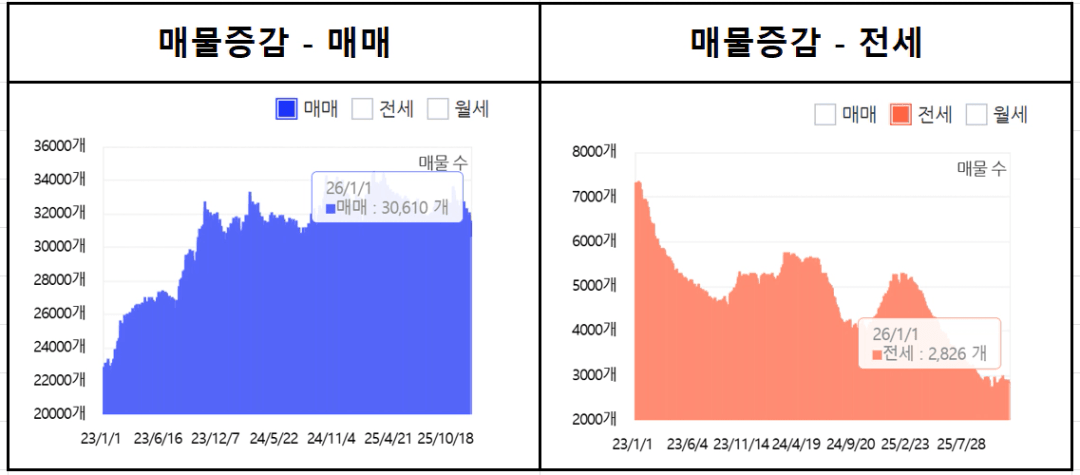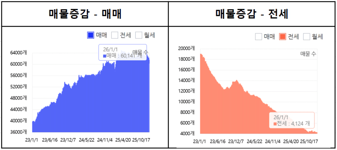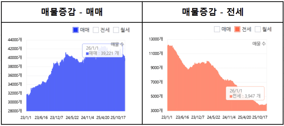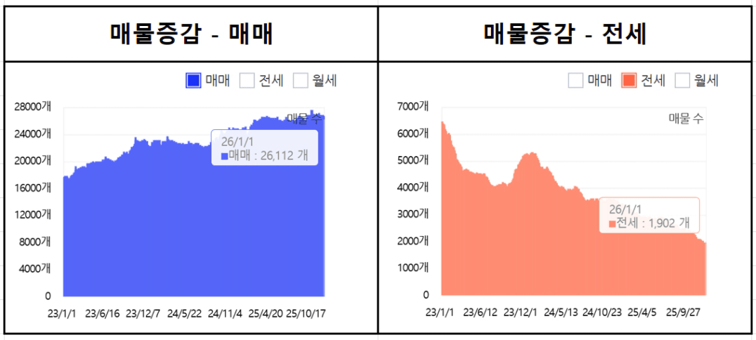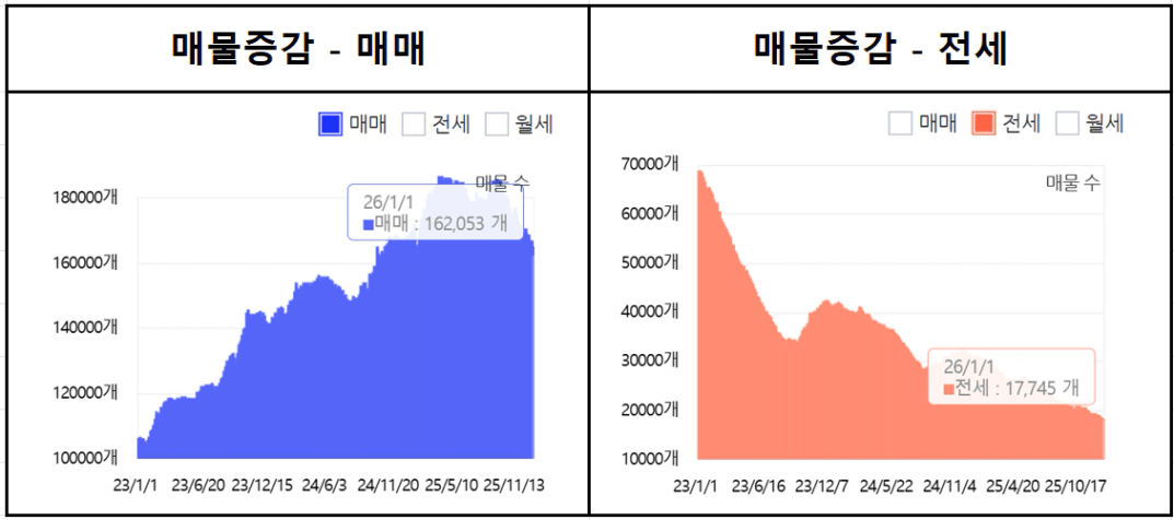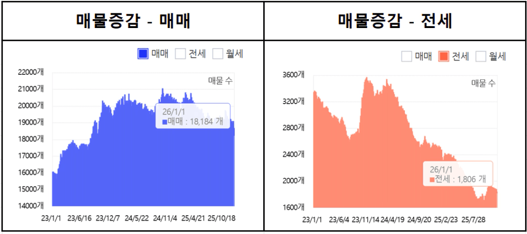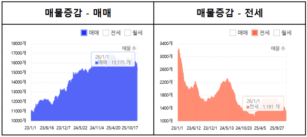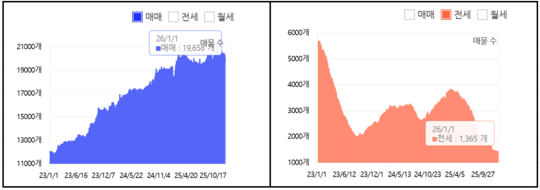 매물갯수 12월에 비해 크게 차이가 없습니다.