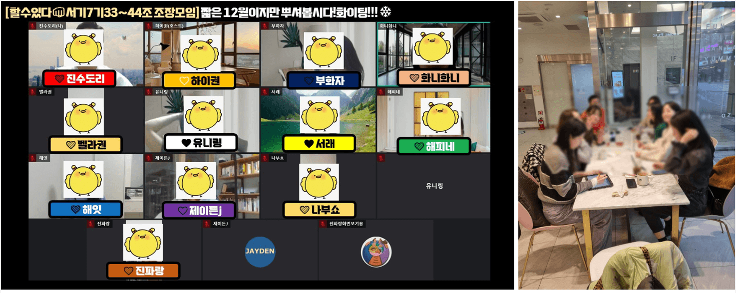 12월 첫 주, 다들 연말 일정 바쁘실 텐데 첫 주부터 조장모임 참여 다 해주신