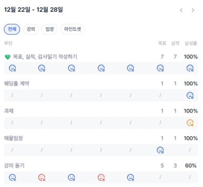 12월 4번째 주는 사실 강의에 집중을 하지 못했다. 아직 완강을 하지 못했기 때문에 미뤄놓은 강의를 얼른 들어야 한다.
