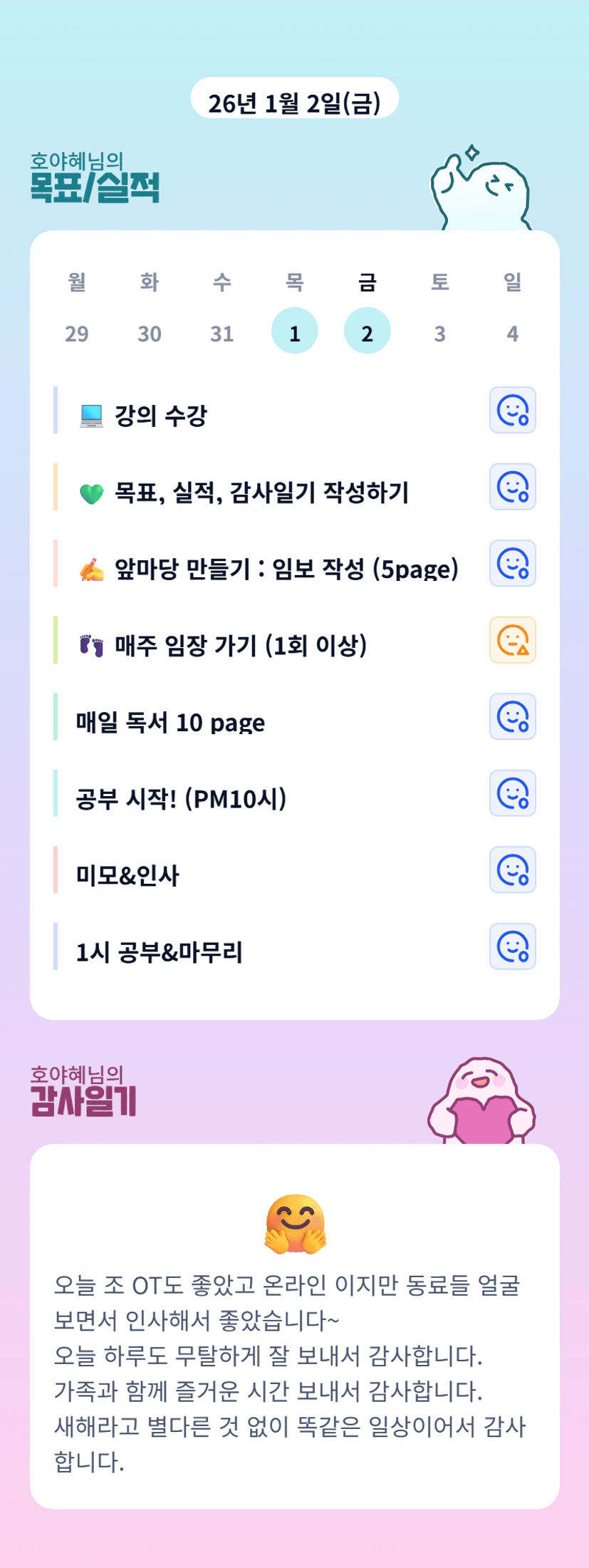 호야님 온라인이었지만 이틀 연속 얼굴 뵙고 인사 나눌 수 있어 반가웠어요 :)