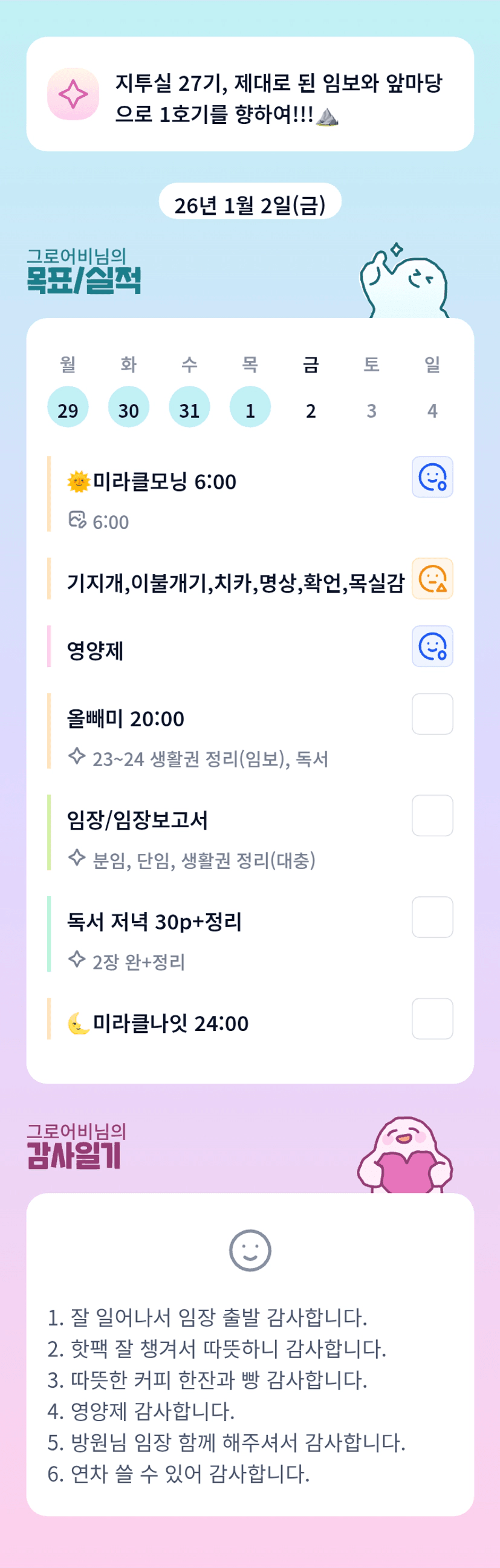 촘촘한 일정 본받아야겠네요 어비님ㅎㅎ 방원님과 임장 화이팅이에요♥