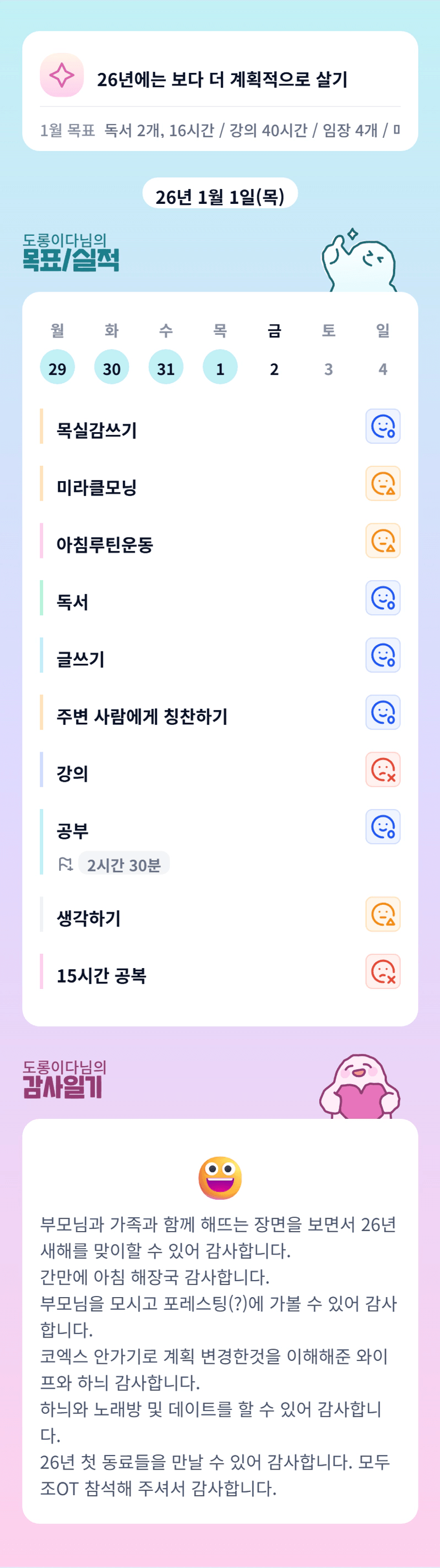 26년도 열심히 하시는 도롱이님 빠이팅🙌