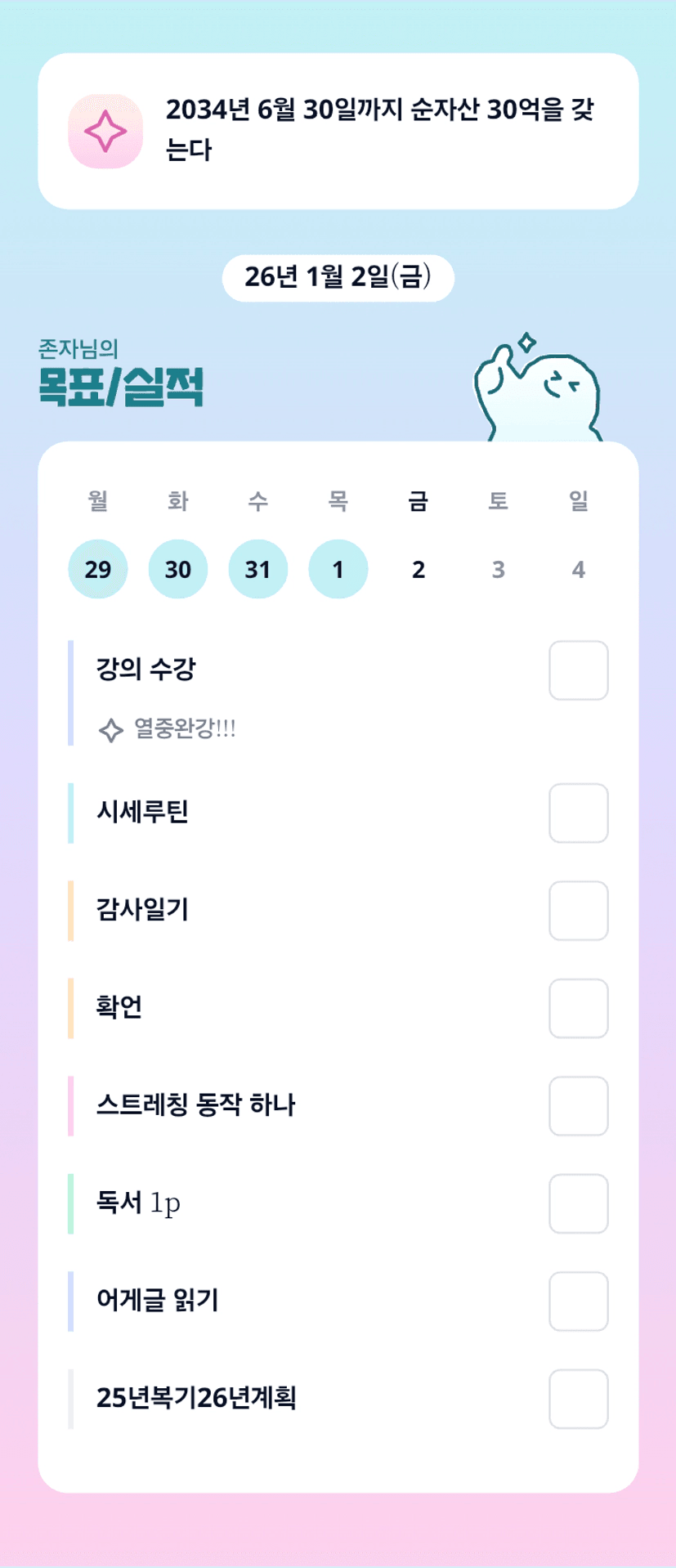 2029년 6월 30일까지 나는 순자산 10억을 갖는다