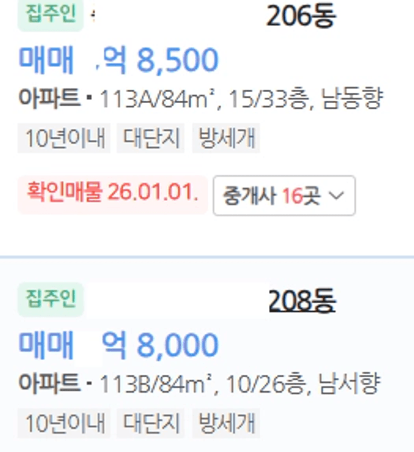 208동 매물을 전화했다면
