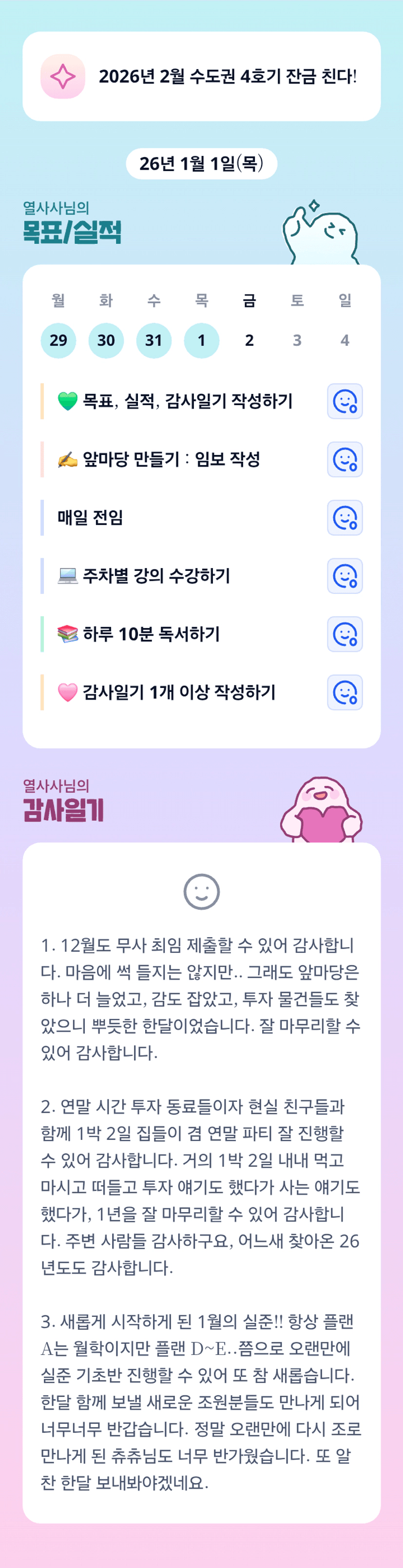 열사사님 실준가셨군요! 새해 복 많이 받으시고 26년 승승장구하는 한 해 되시길 빕니다. 😊
