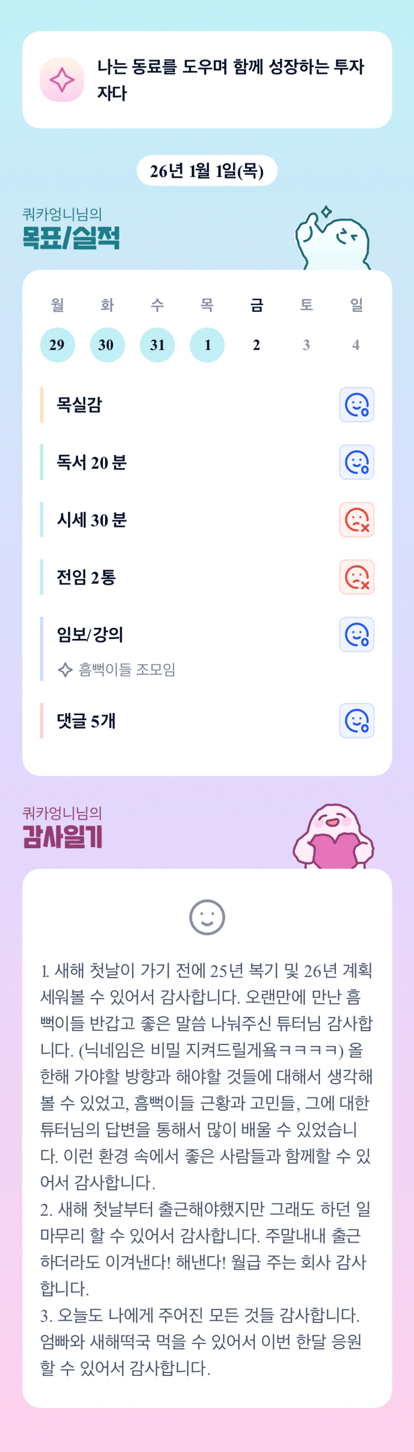 새해 첫날부터 출근, 조모임까지 완벽 소화! 쿼카님 올해도 화이팅입니다💛