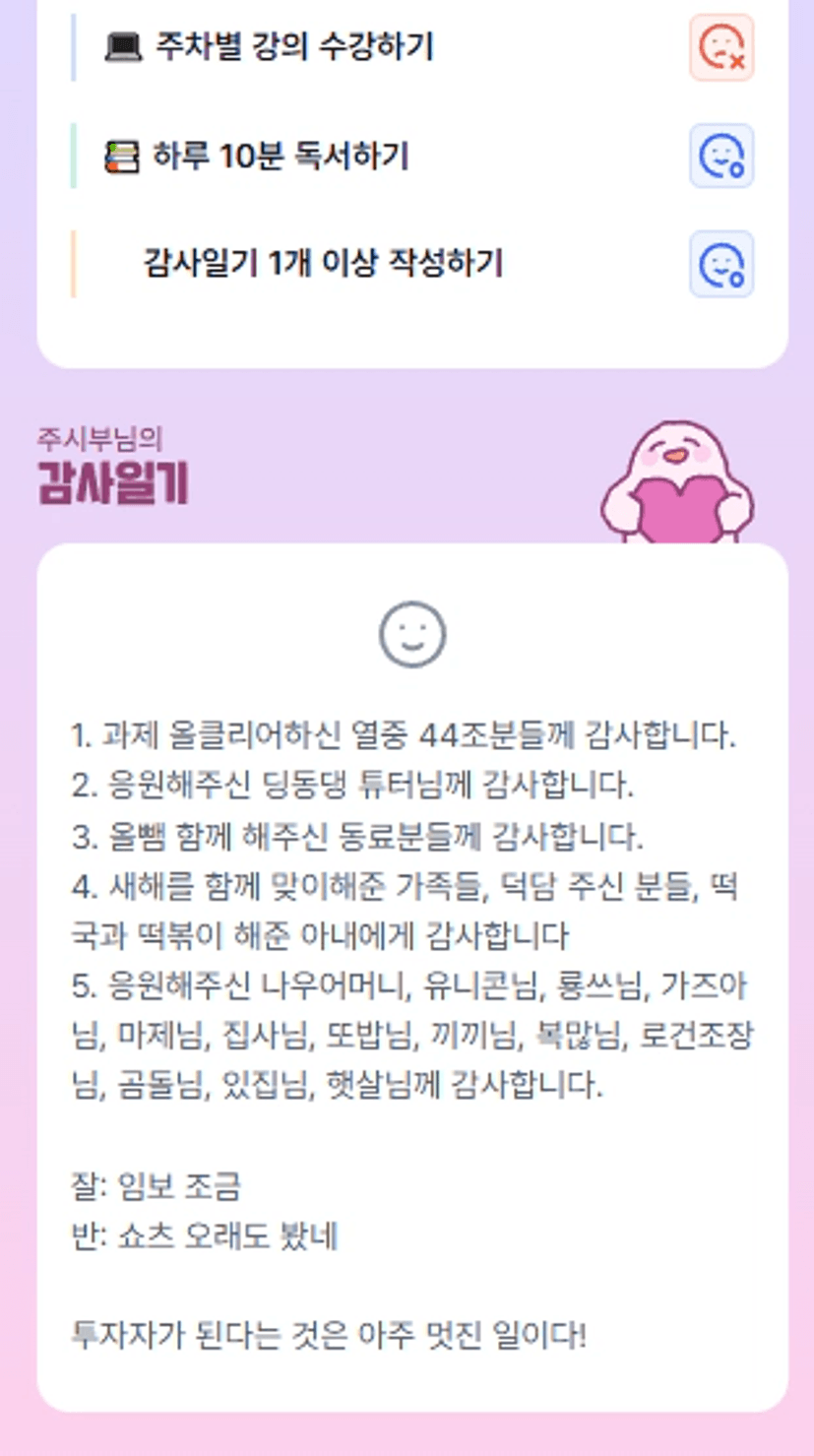 과제 올클리어도 멋지고~ 아주 멋진 투자자가 되어 가고 있는...아니 이미 멋진 투자자 주시부님👍