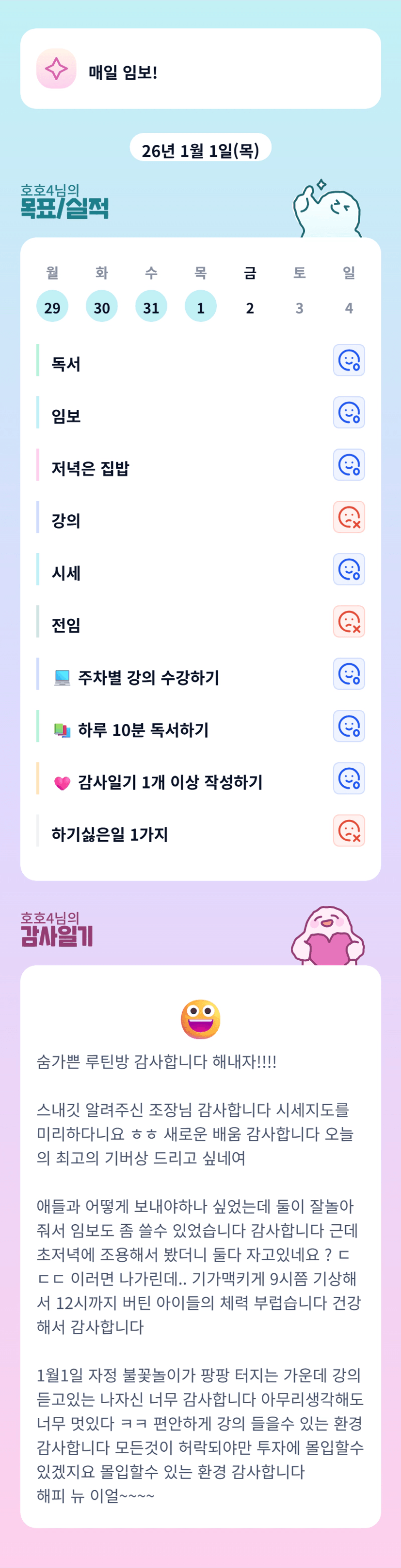 크.. 멋진 호님!!!!!! 저도 칭찬 +1 드립니다 ㅎㅎ 항상 열심히 해주셔서 감사해요오오