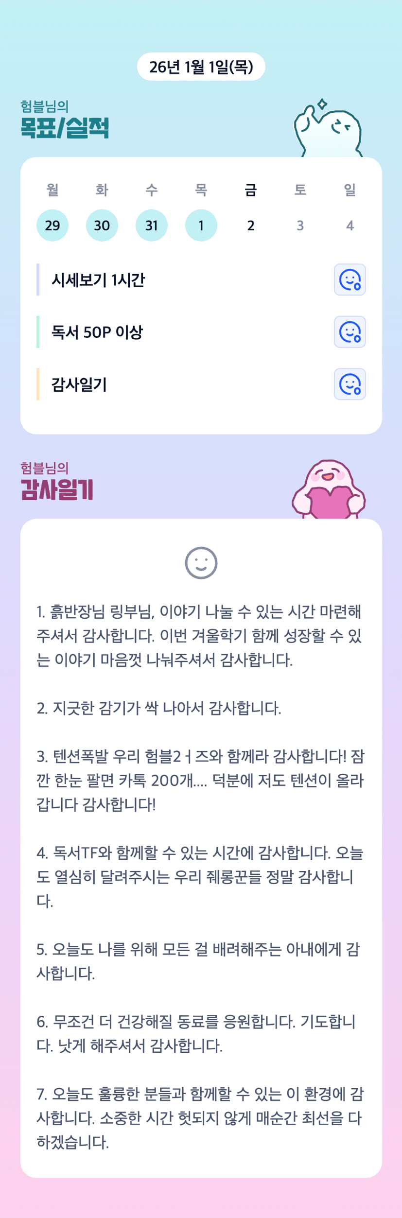튜터님~ 겨울학기 홧팅하세요 ^^ 험블러즈도 이제 시작입니다^^ 홧탱