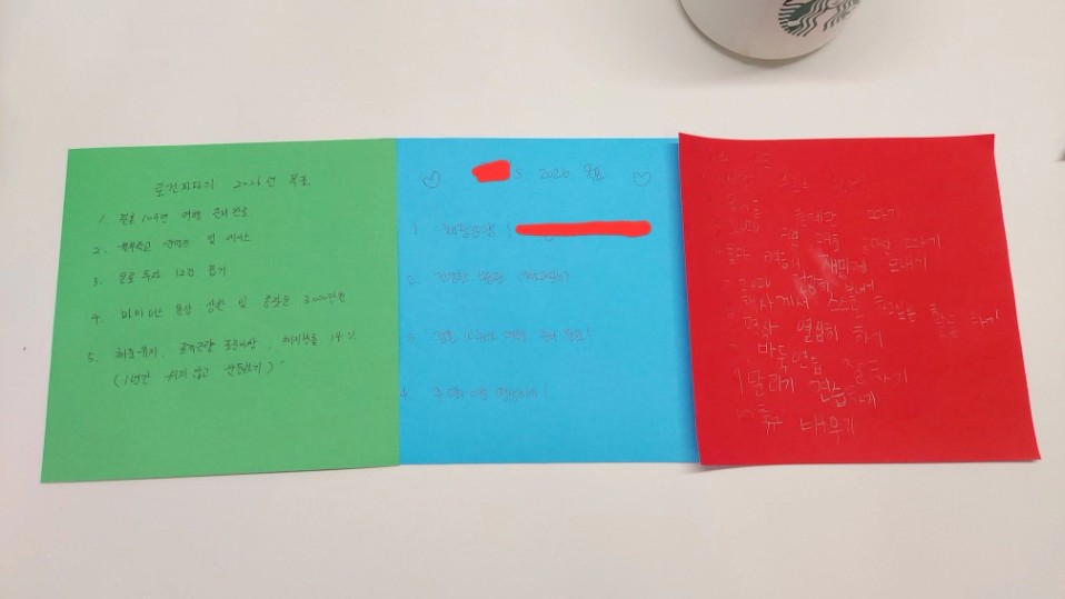 저희 가족도 어제 이렇게 목표들을 쓰고