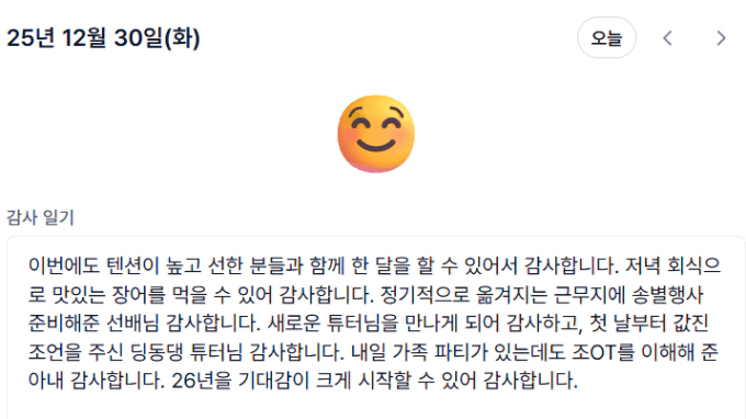 그 날의 감사일기를 미리 써보기로 했습니다.