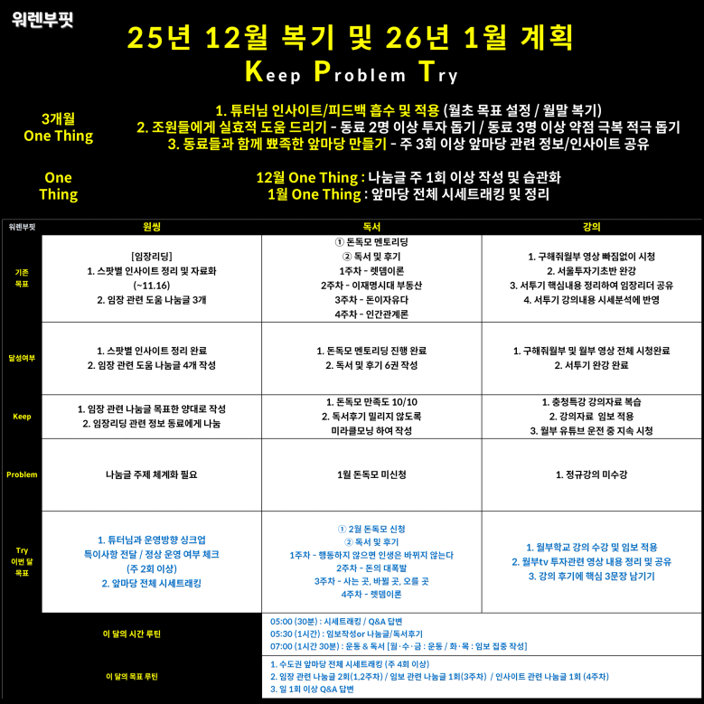 1월에는 지금 작성한 KPT 복기록을 책상 옆에 붙여두고