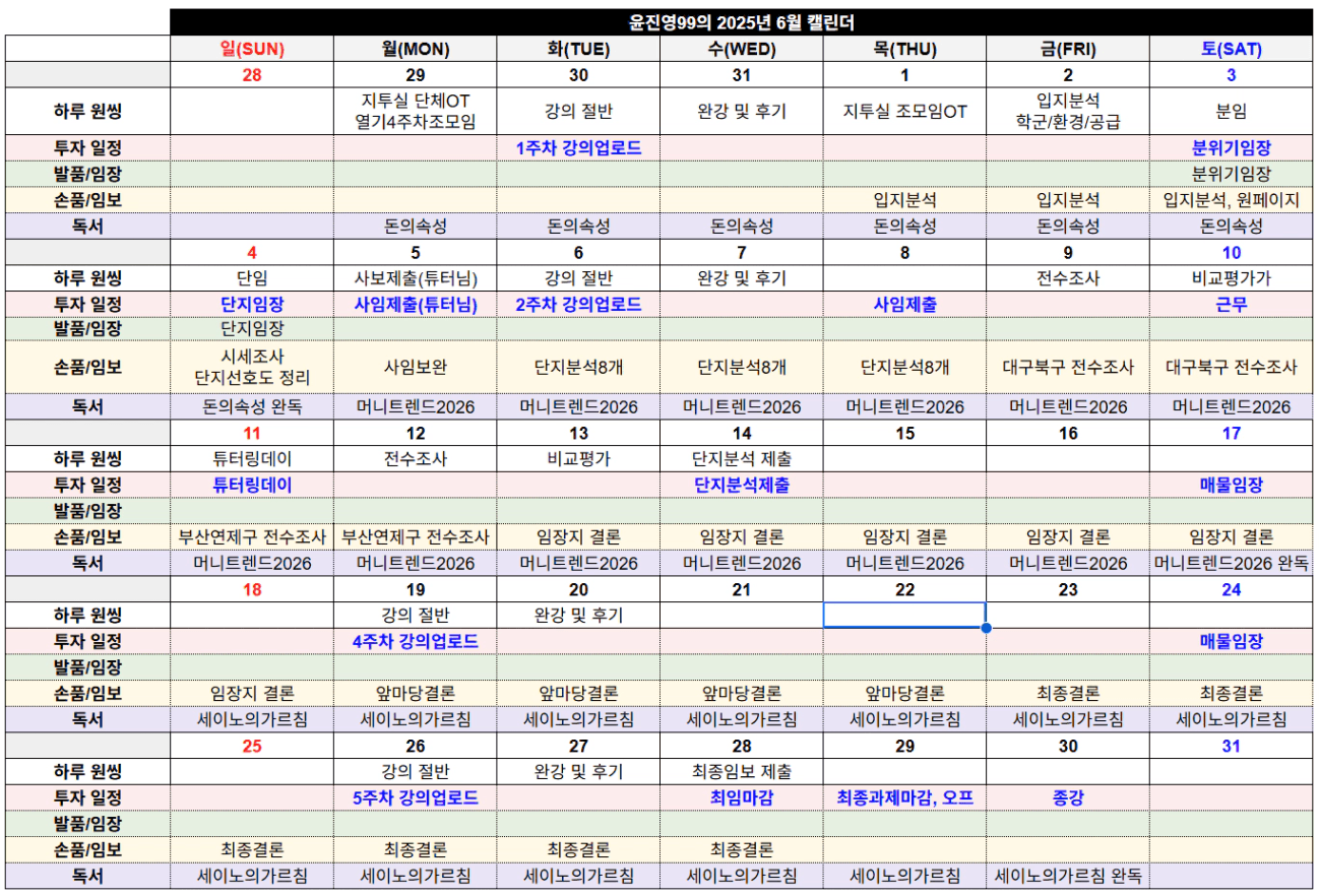 2순위 - 투자 : 1호기 해내고 투자자로서의 역량 키우는 성장 꾸준히 하기, 내년 2호기 위한 앞마당 만들기