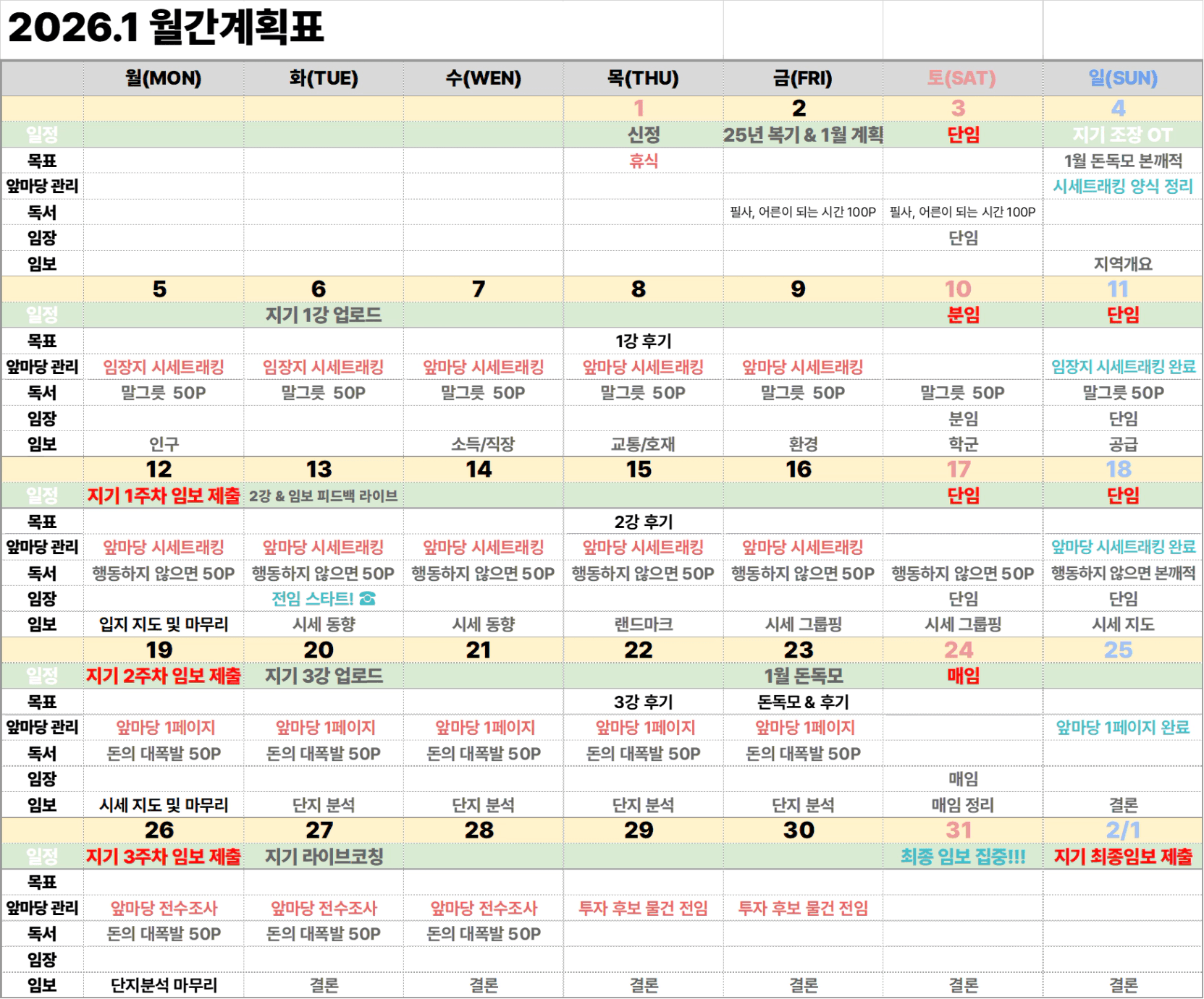 🙌 Action Plan : 시세 트래킹 및 전임 습관화 (앞마당 투자 후보 지역 전수조사, 투자 후보 리스트 만들기 등)