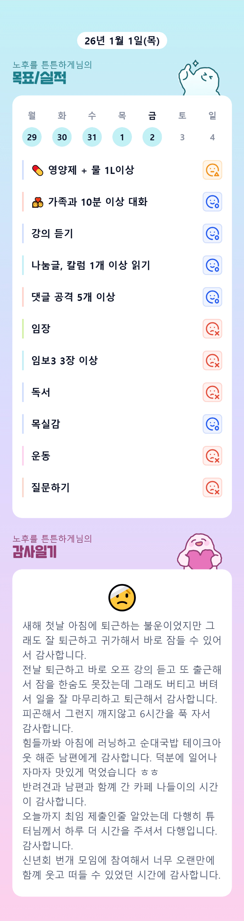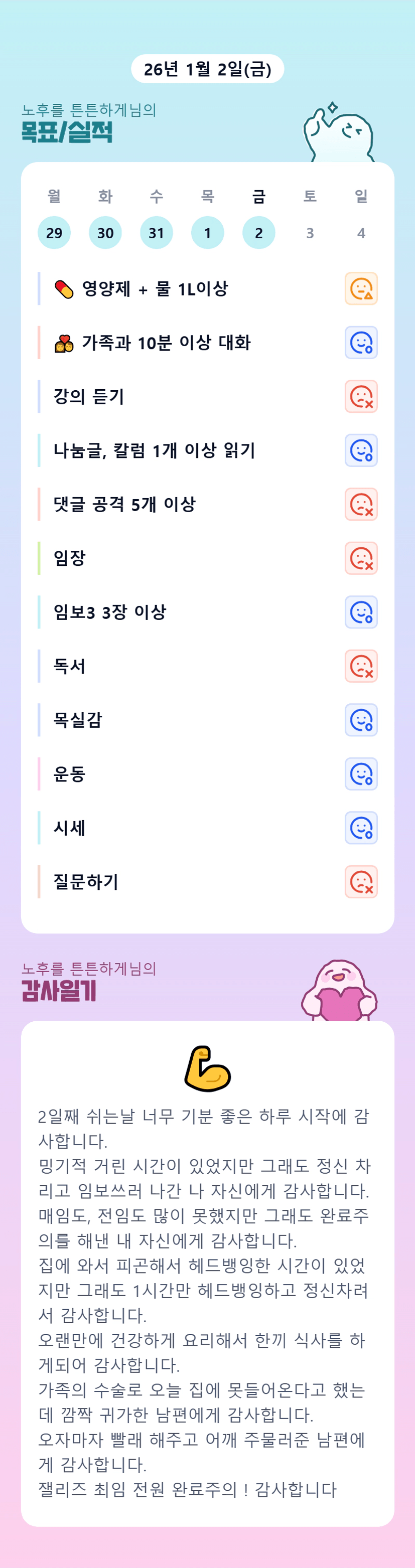 최임 완료주의! 조장님 두집살림 바쁘실텐데 멋지십니다👍 화이팅!!
