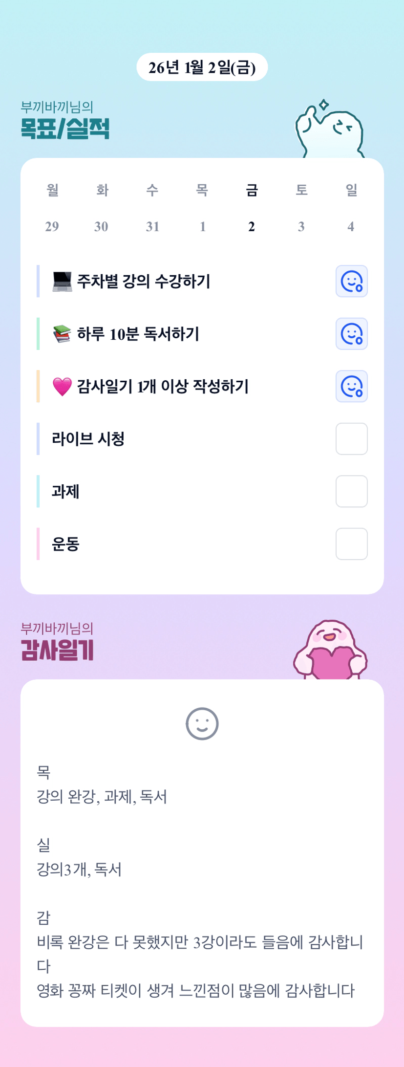 와 부끼님 3강까지 들으신것도 대단합니다 정말!! 저도 보통 이틀완강인데 내일 분임을 위하여!! 목실감까지 쓰시고 👍🏻👍🏻👍🏻다음주에 만나요 ㅎㅎ그동안 임보 화이팅!!