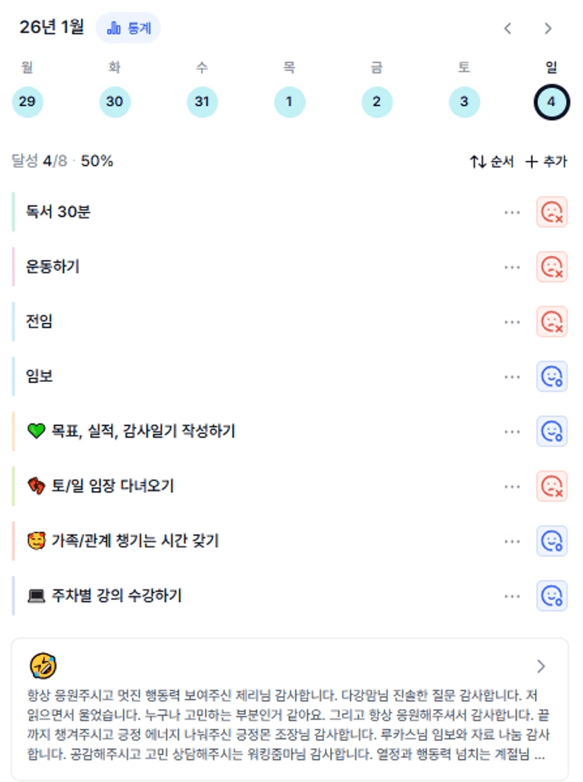2️⃣ 이번 주 목실감을 작성하면서 느낀점과 더불어 한 주 스스로 어떻게 지냈는지 간단한 회고를 적어보아요 :)