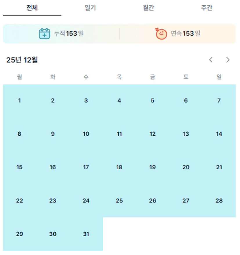 25년 마지막의 연휴를 온전히 혼자만의 시간으로 사용 할 수 있어서 감사합니다.