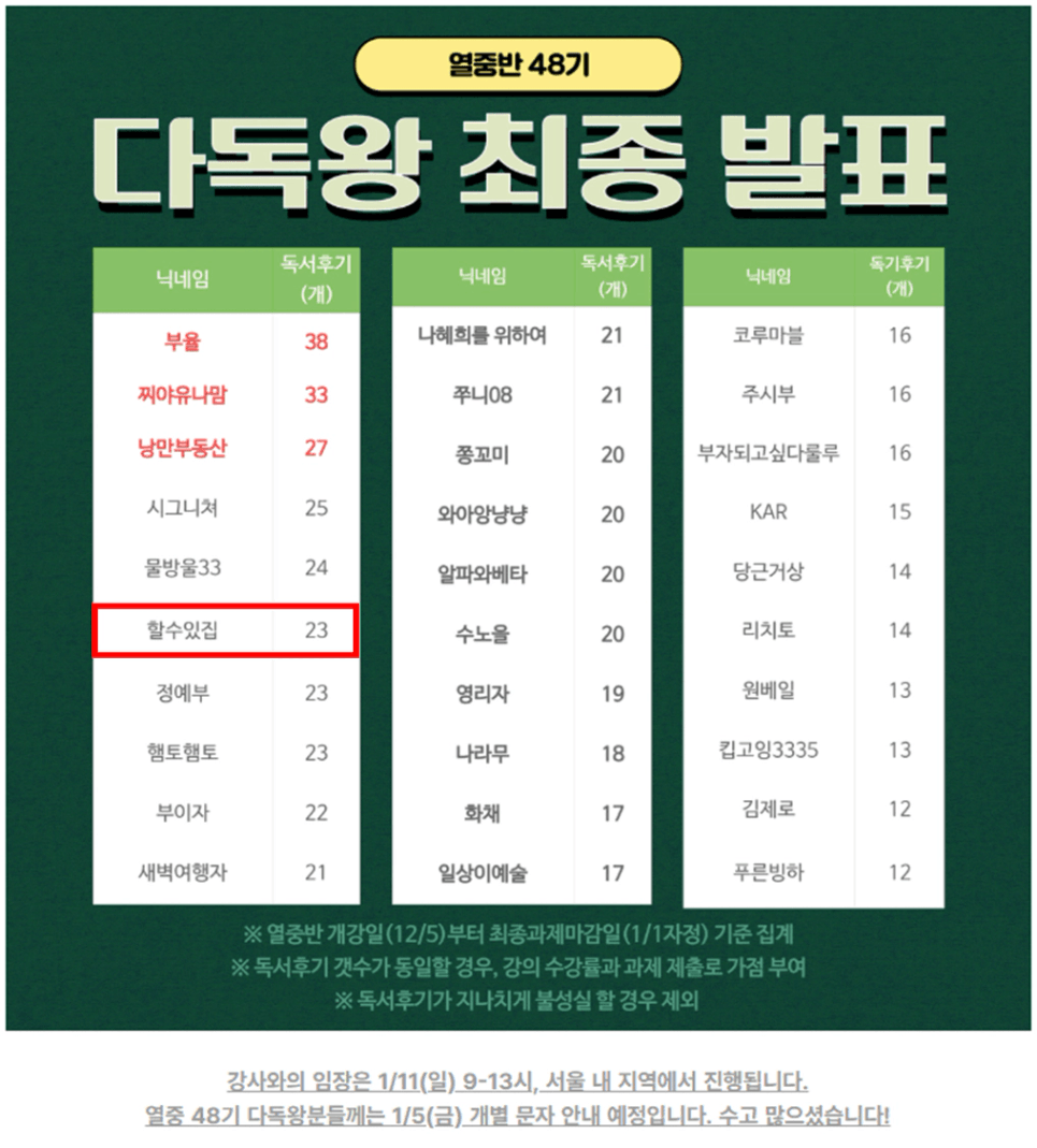 다독왕이라니~~!! ㅎㅎㅎ 한해를 멋지게 마무리하셨으니 26년도 엄청나게 즐거울 것 같습니다!