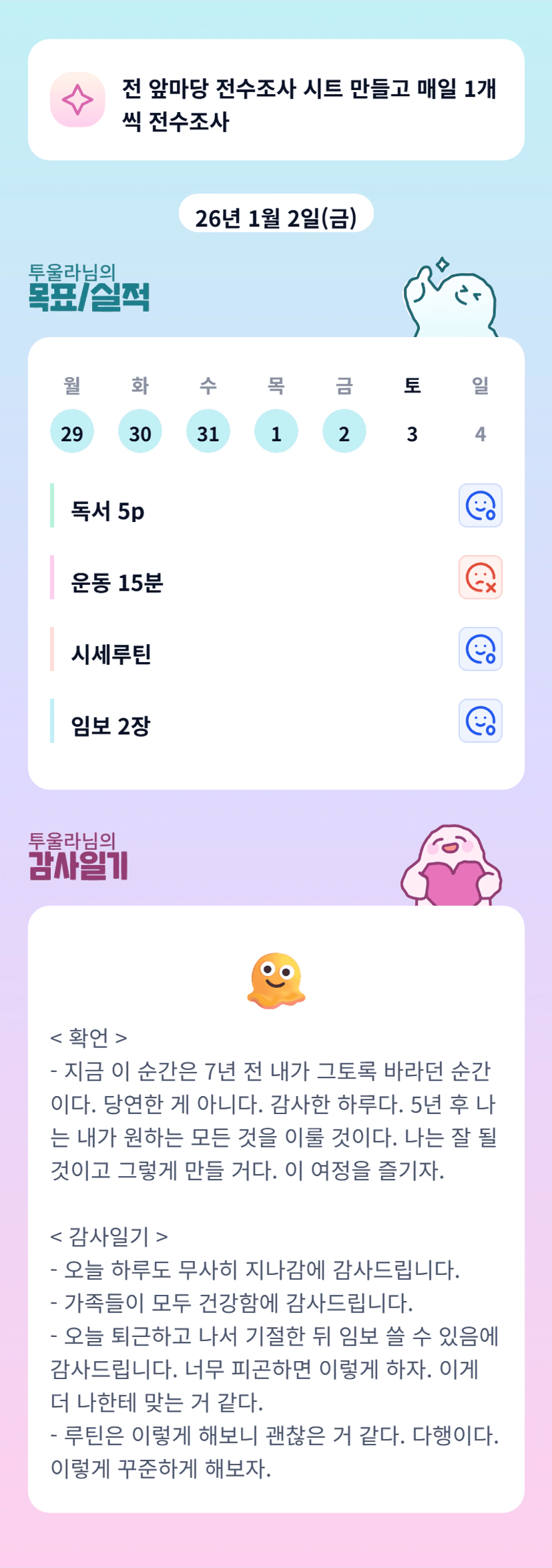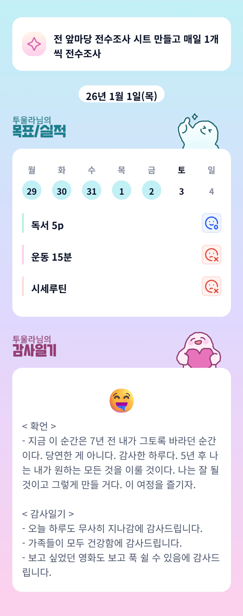 울라님만의 패턴 잘 찾아가고 있군요~~새해도 빠이팅🌟