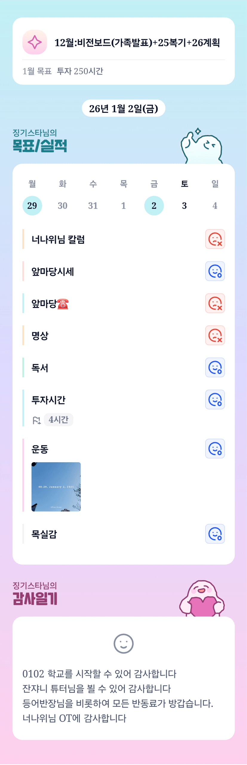 잔쟈니 튜터님 반이시군요!! 잘하실 징기님 3개월동안 함께 딥다이브 해봐요!! 화이팅!!