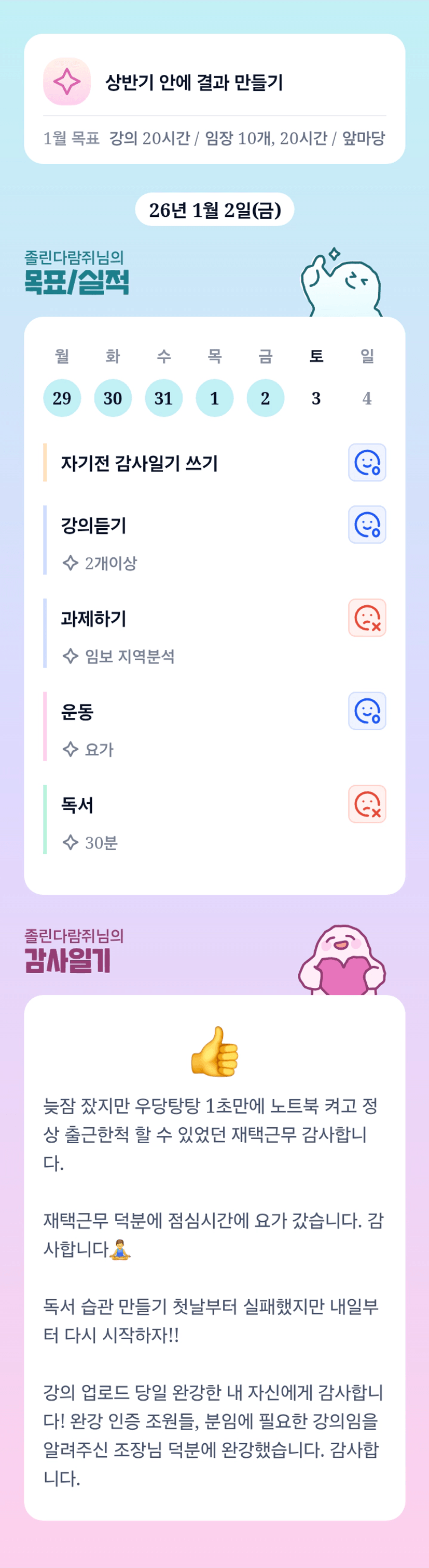 다람쥐님 목실감!! 많은걸 이루셨군요 완강까지!! 후기 가시나요~