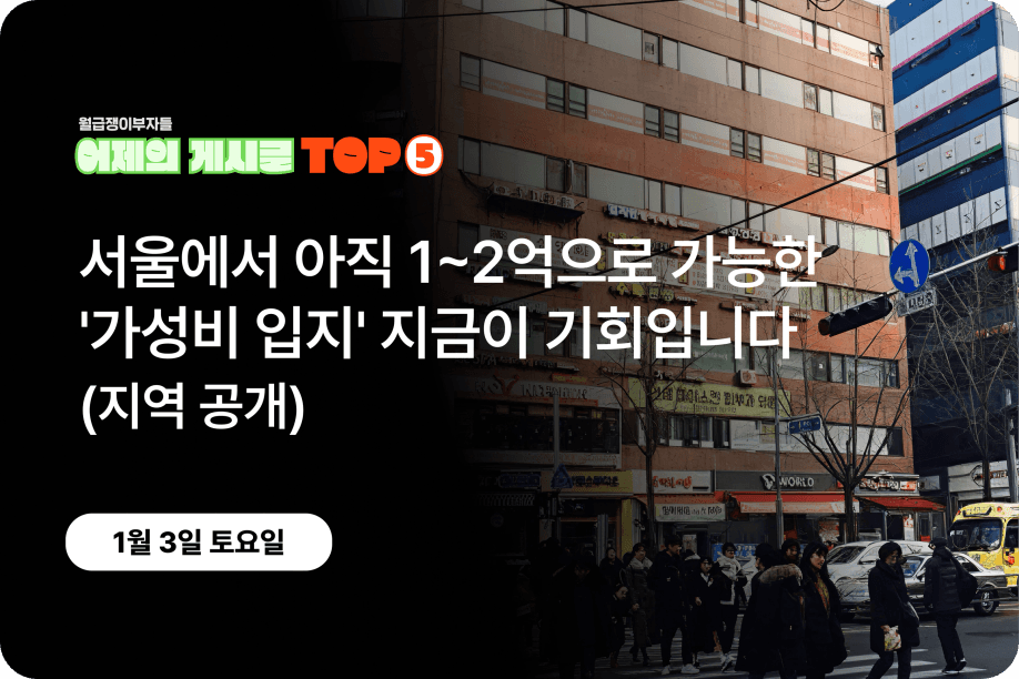 [어제의 게시글 Top5] 서울에서 아직 1~2억으로 가능한 '가성비 입지' 지금이 기회입니다 (지역 공개)