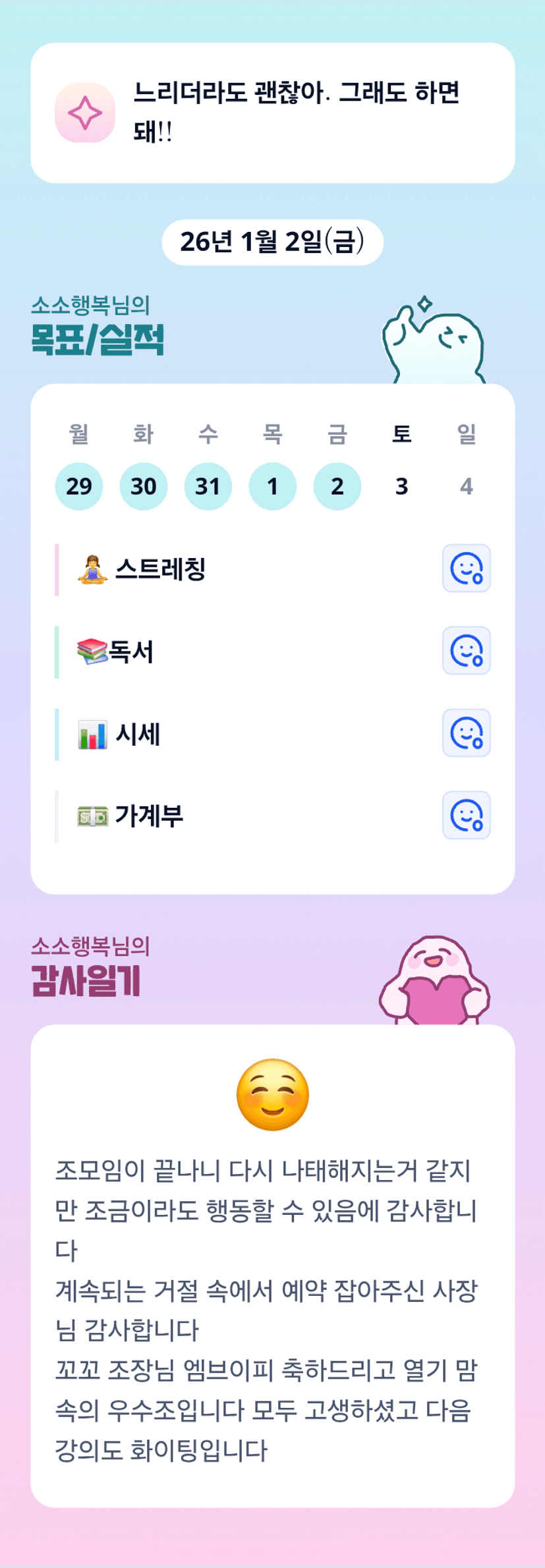 하루 밖에 안지났는데 나태 안됩니다 ㅎㅎㅎ 소행님 화이팅입니다 ^^