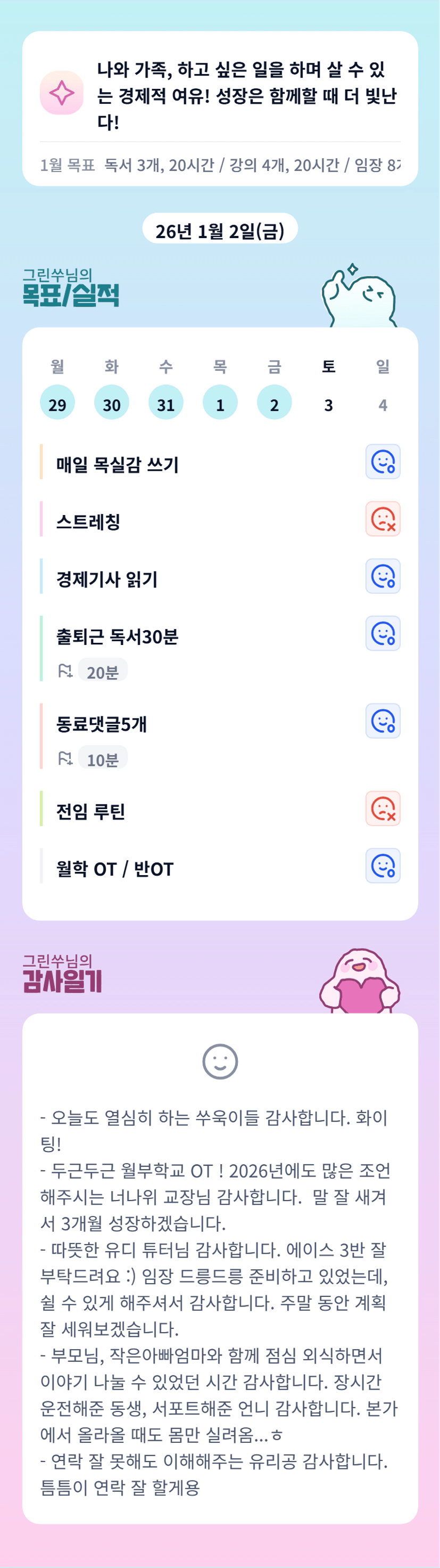 가족 유리공 시간잘보내요 그린님♡ 우린 담주에 만나요♡ 화이팅팅팅