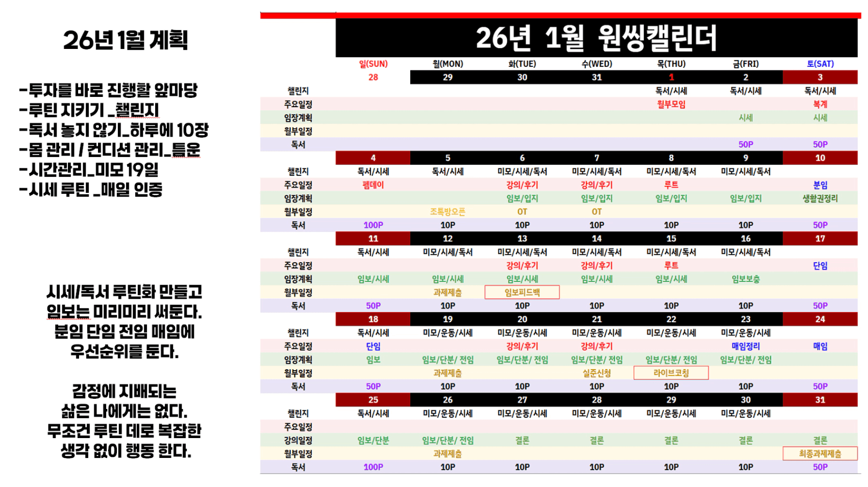 25년 복기와 26년 일년 계획도 작성하여 올려보도록 하겠습니다.