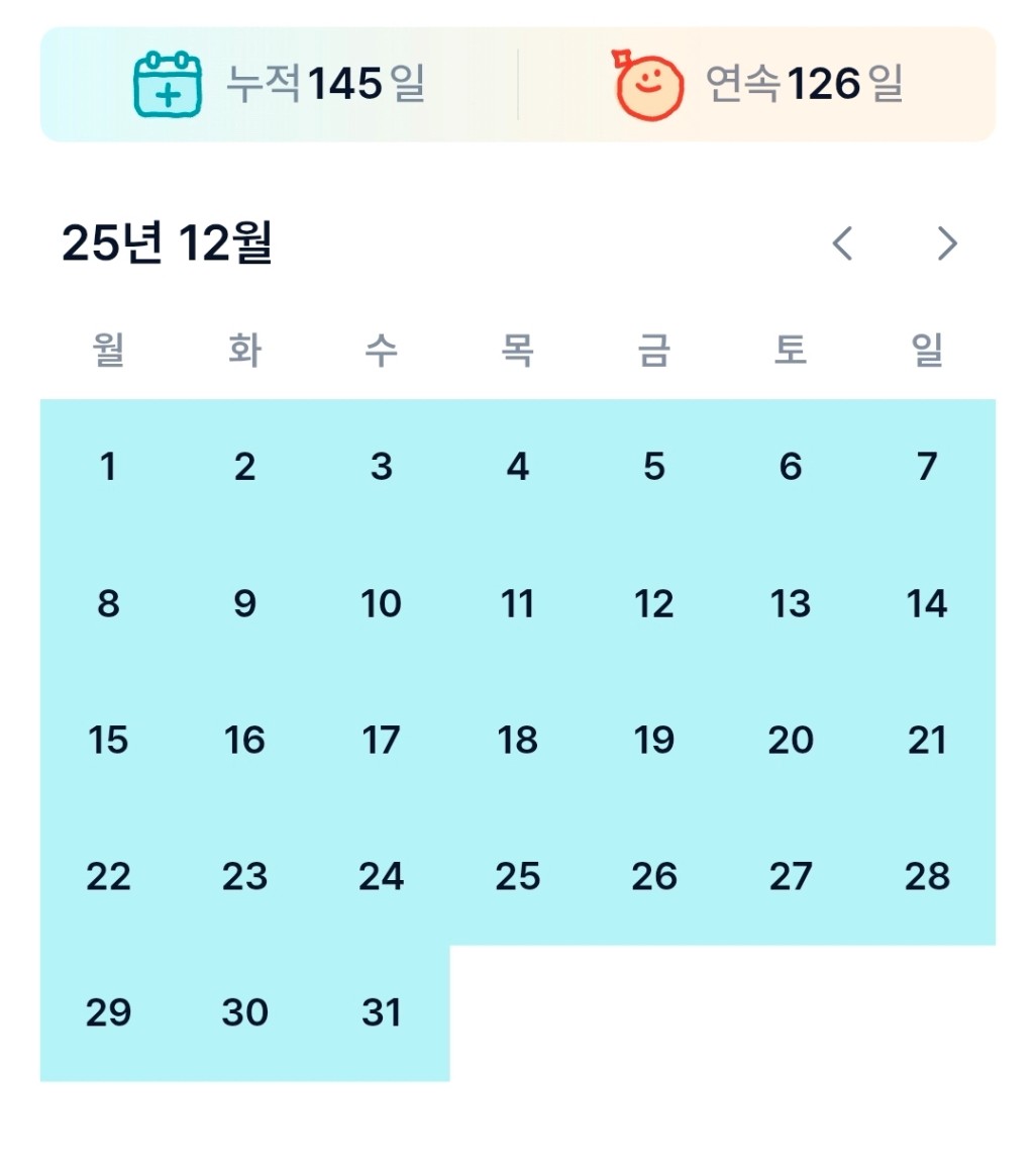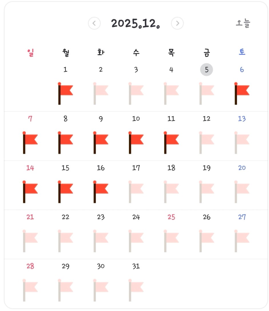 -운동30분 11월 0회 성공 _12월 20회 성공 목표였으나 9회 했습니다. 1월은 틈운 매일 헤 보겠습니다.
